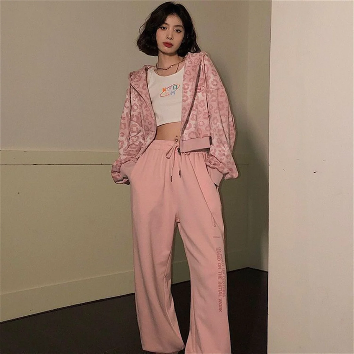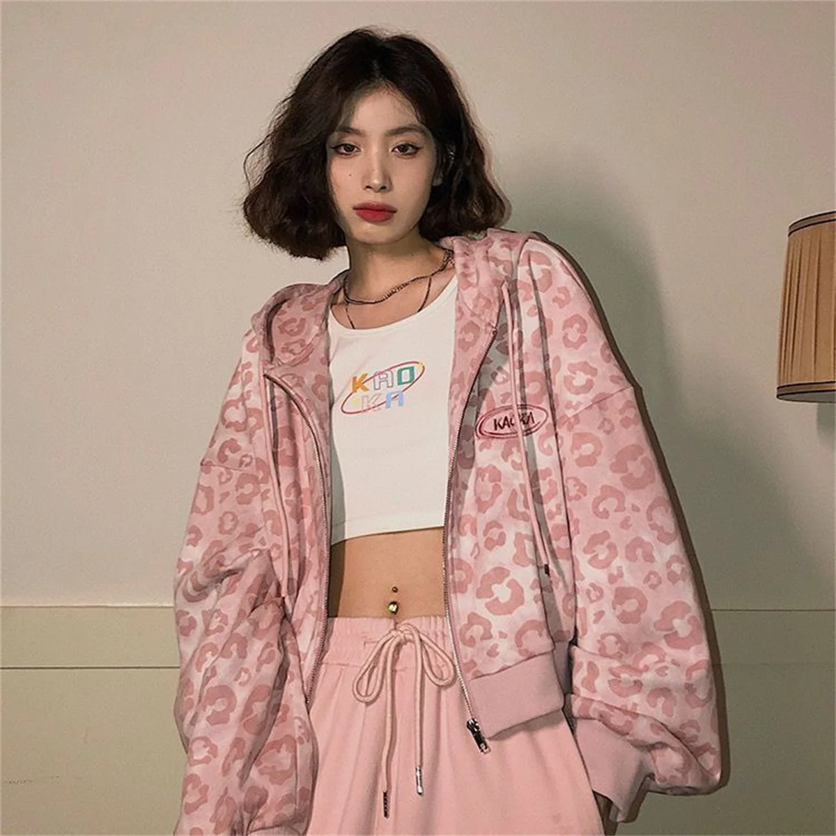The Pink Leopard Print Zip-Up Hoodie offers a considered balance of casual comfort and subtle style for women aged 18 to 24. Crafted from medium-weight knitted polyester, this hoodie provides moderate warmth suitable for autumn layering without adding bulk. The soft pink leopard print adds a quiet visual interest that aligns with modern minimalism, while the full zip closure and hood allow for adaptable coverage throughout the day.