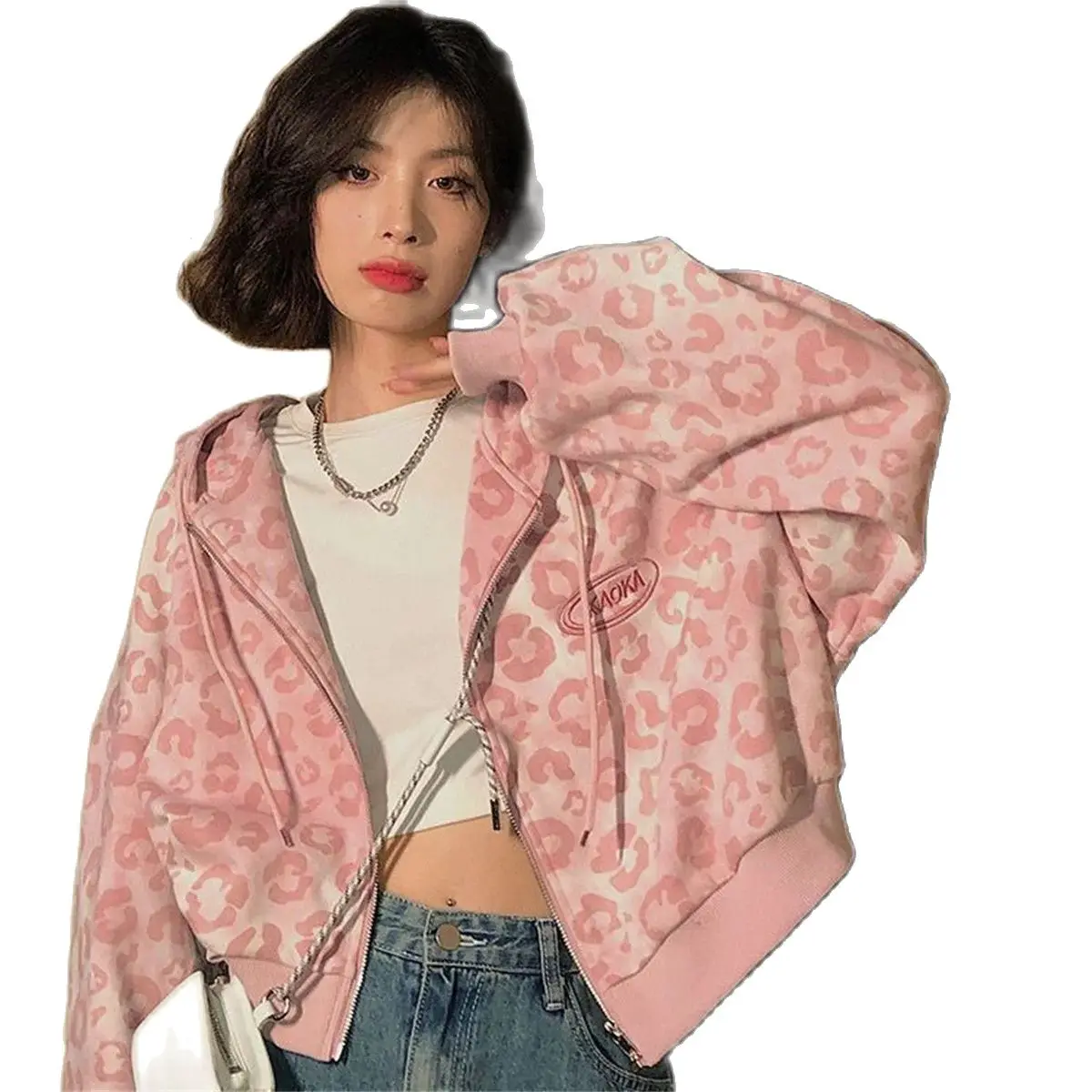 Crafted for women aged 18 to 24, this pink leopard print zip-up hoodie balances casual ease with considered design. The medium-weight knitted polyester fabric offers moderate warmth, making it suitable for autumn layering without added bulk. Its regular fit and full zip closure with a hood provide adaptable coverage and a structured silhouette.