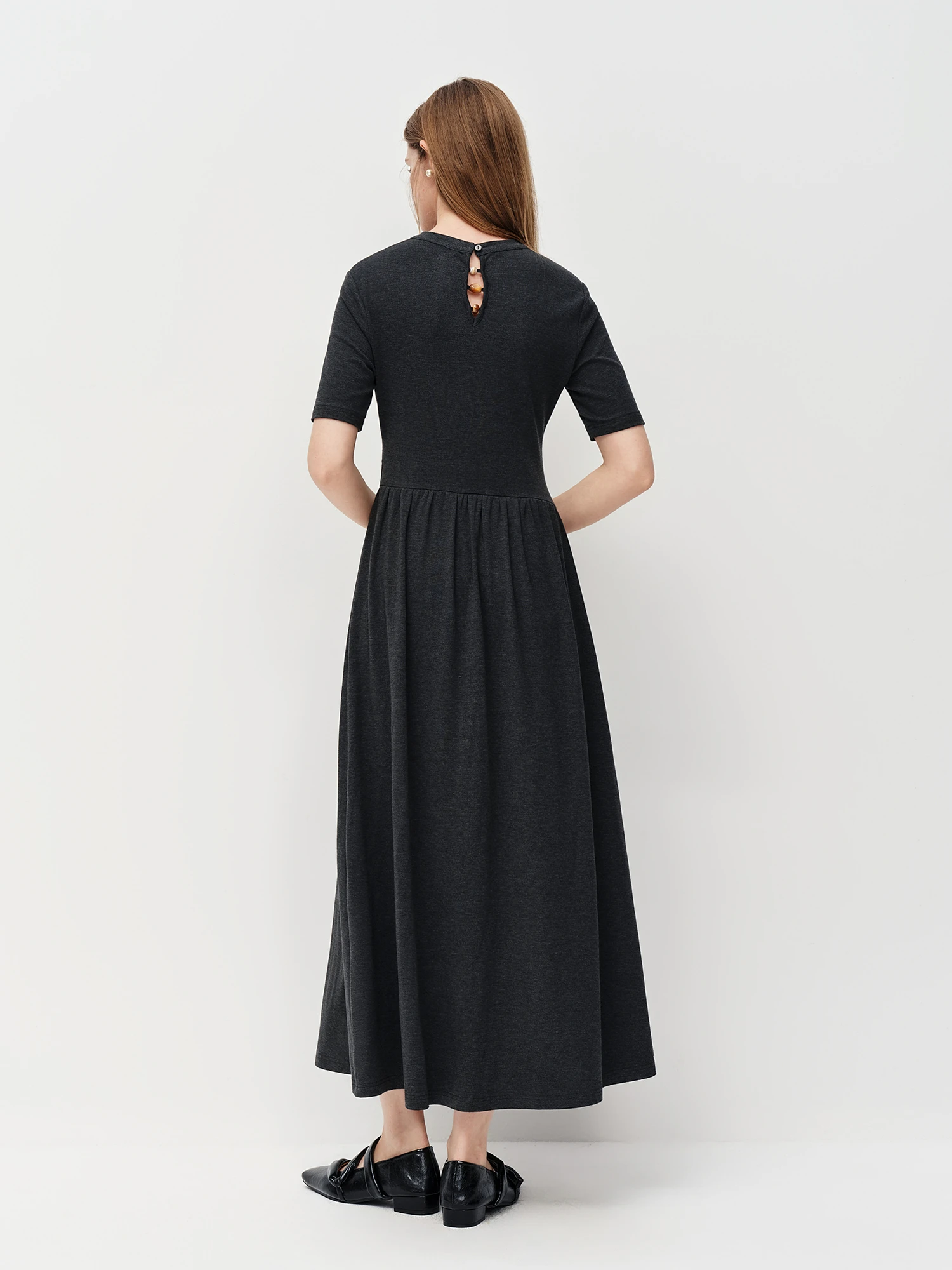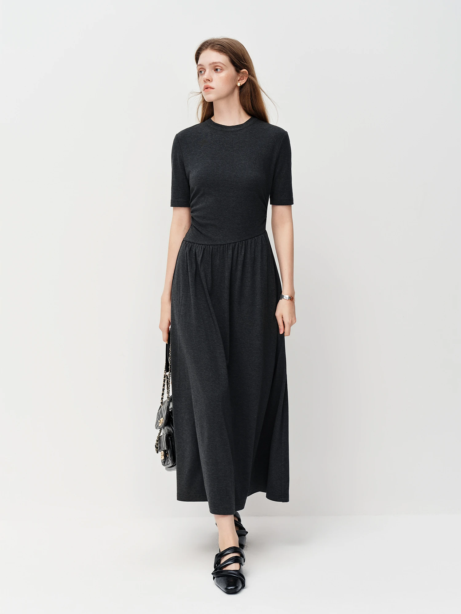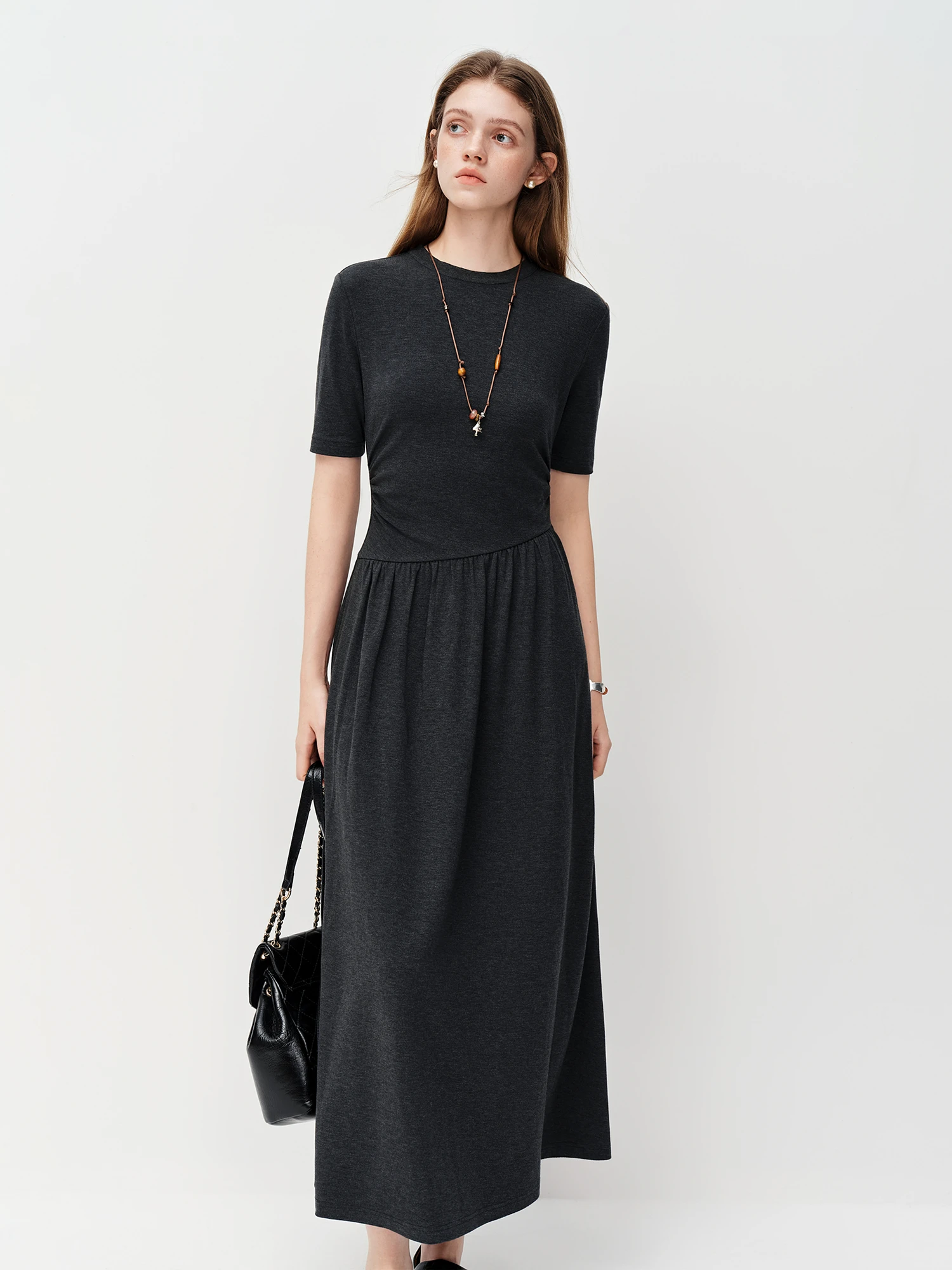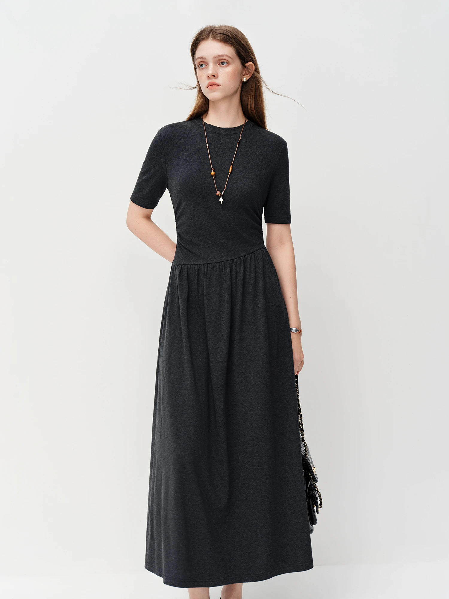 Embrace effortless elegance with the Pleated A-Line Long Dress in Dark Grey. Perfect for juniors seeking a classic style, this ankle-length dress features a comfortable pullover design and an empire waistline that flatters various body types.