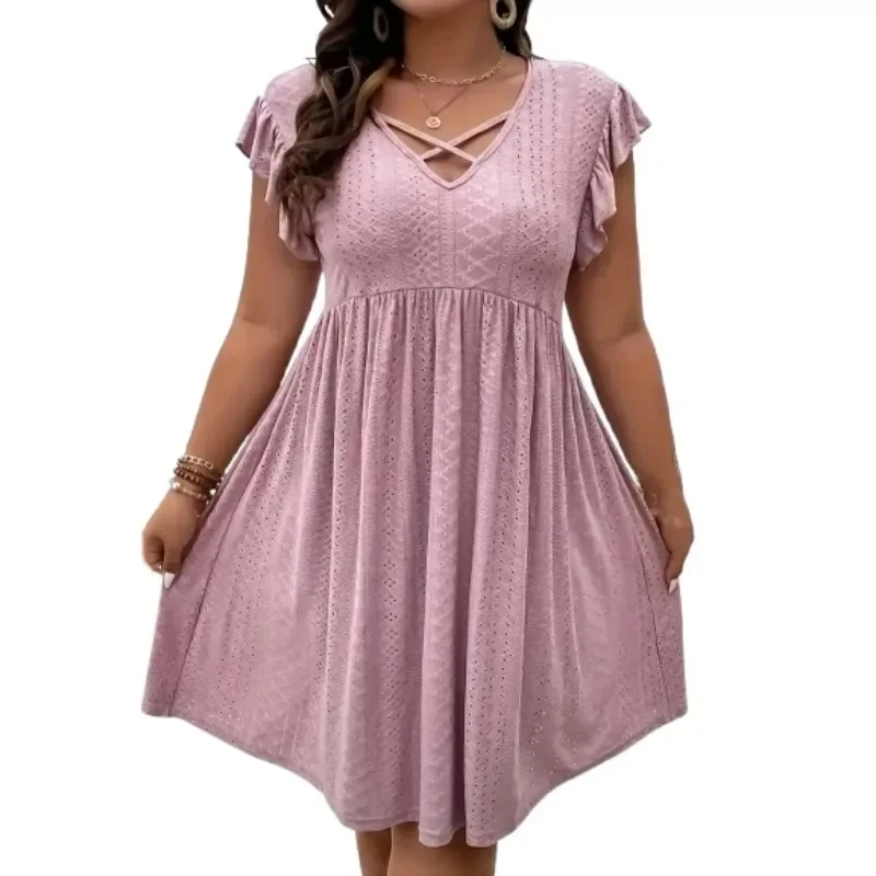 Flattering Plus Size V-Neck Cross Strap Dress in Pink