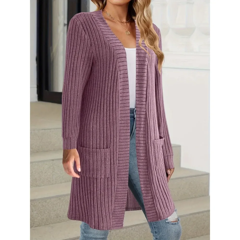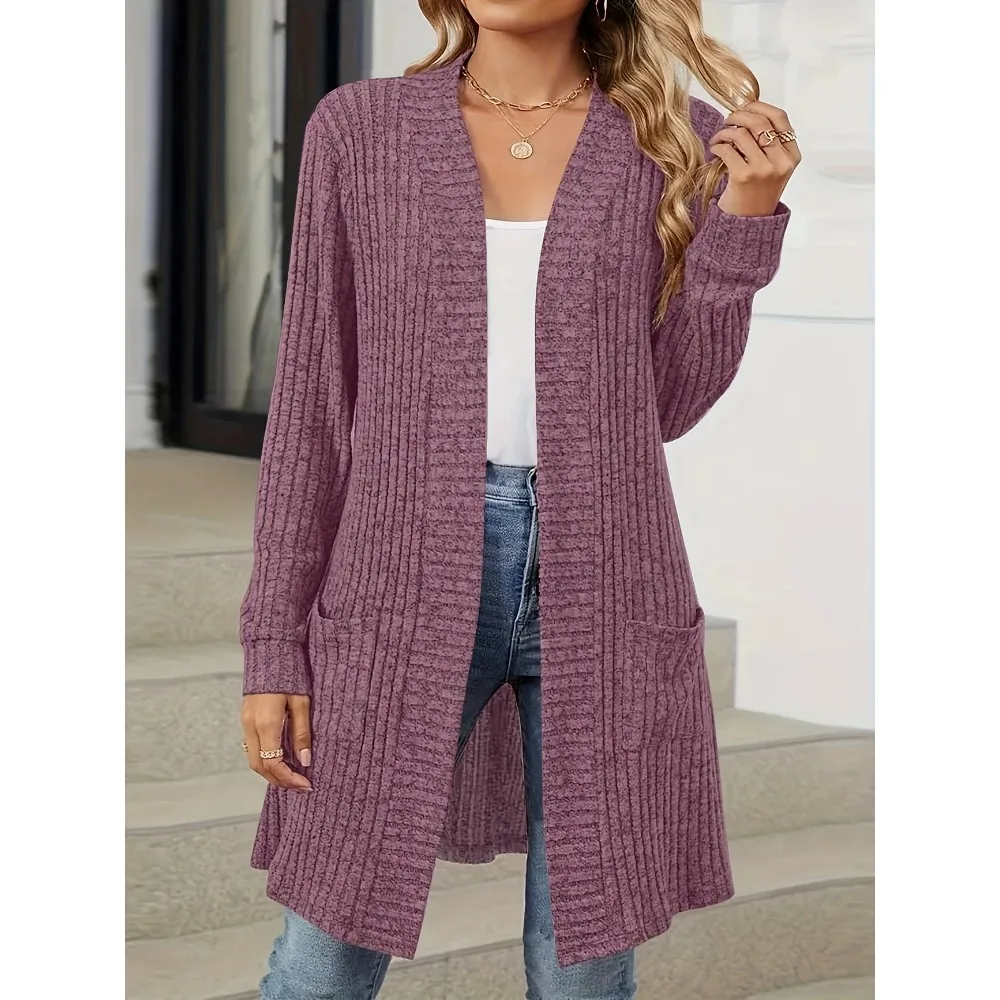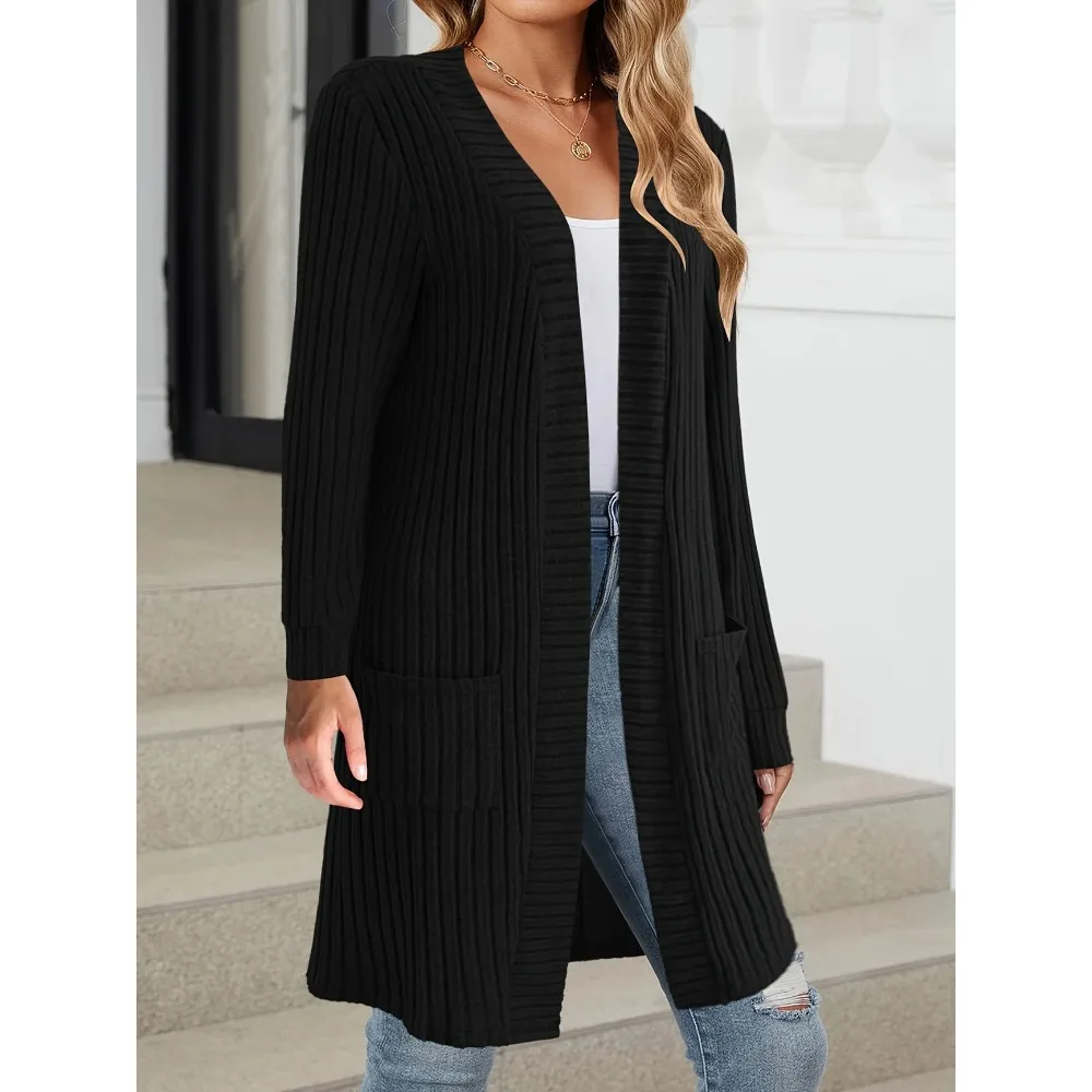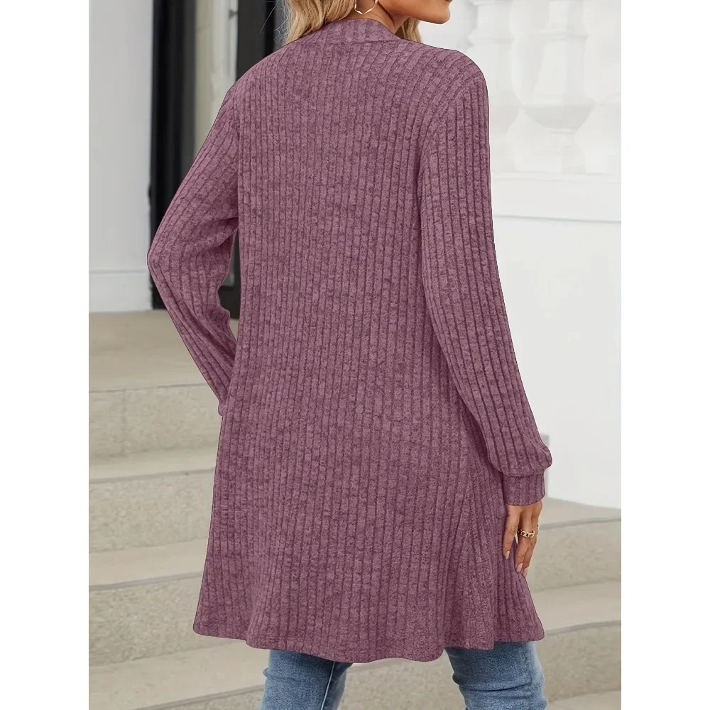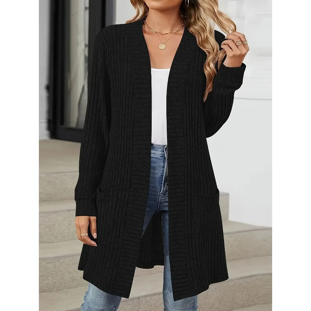 Sophisticated Ribbed Open Front Coat with Pockets – Extended Sizes