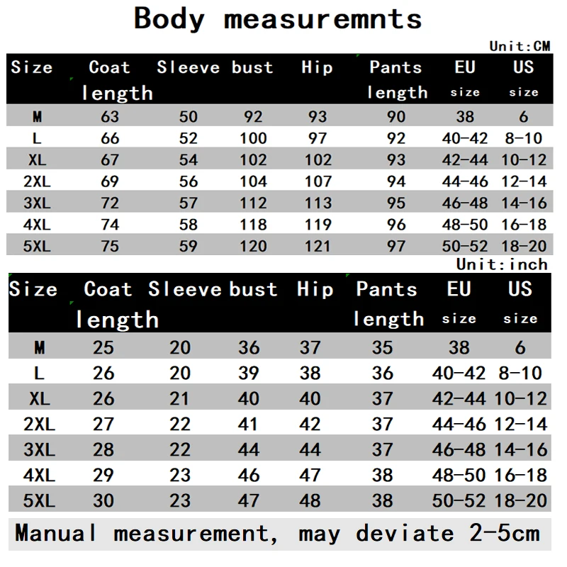 - Sizes available from M to 5XL, tailored for every body type