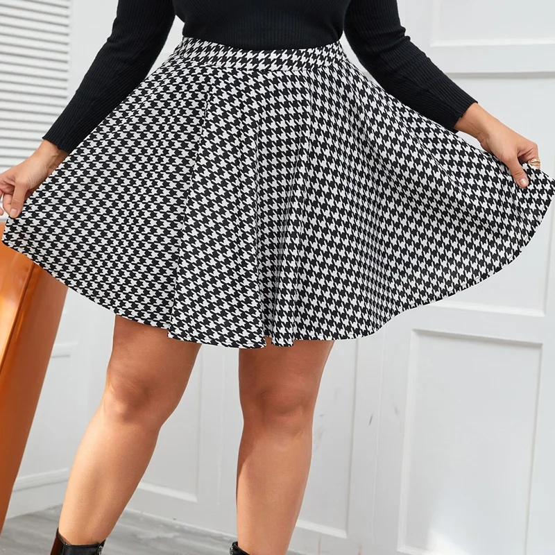 Plus Size Houndstooth Flared Skirt for Elegant Summer Style