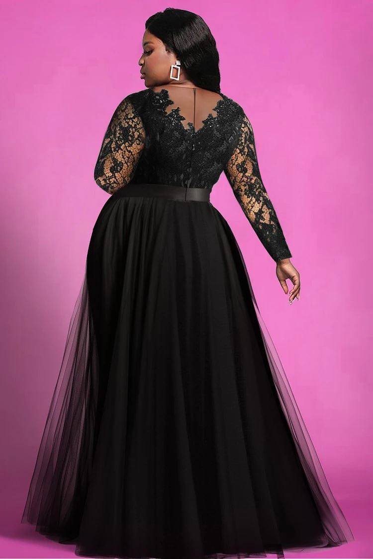 Elegant Plus Size V-Neck Maxi Dress with Lace & Organza