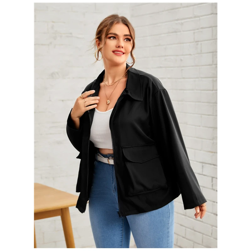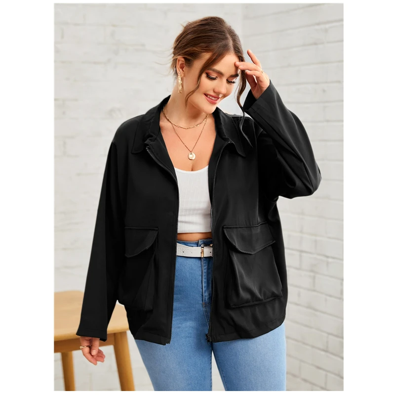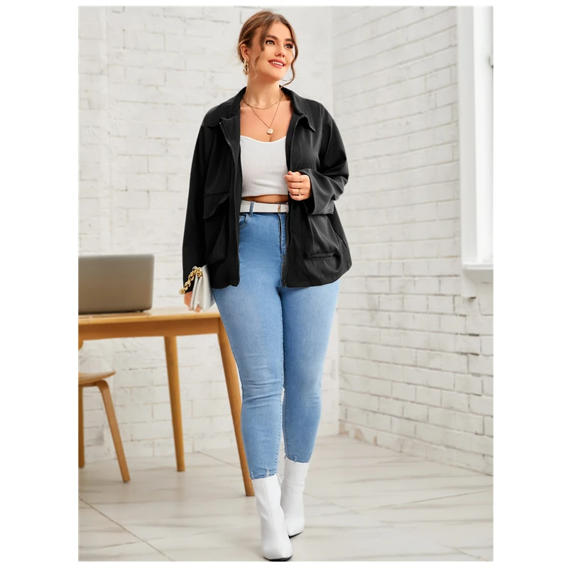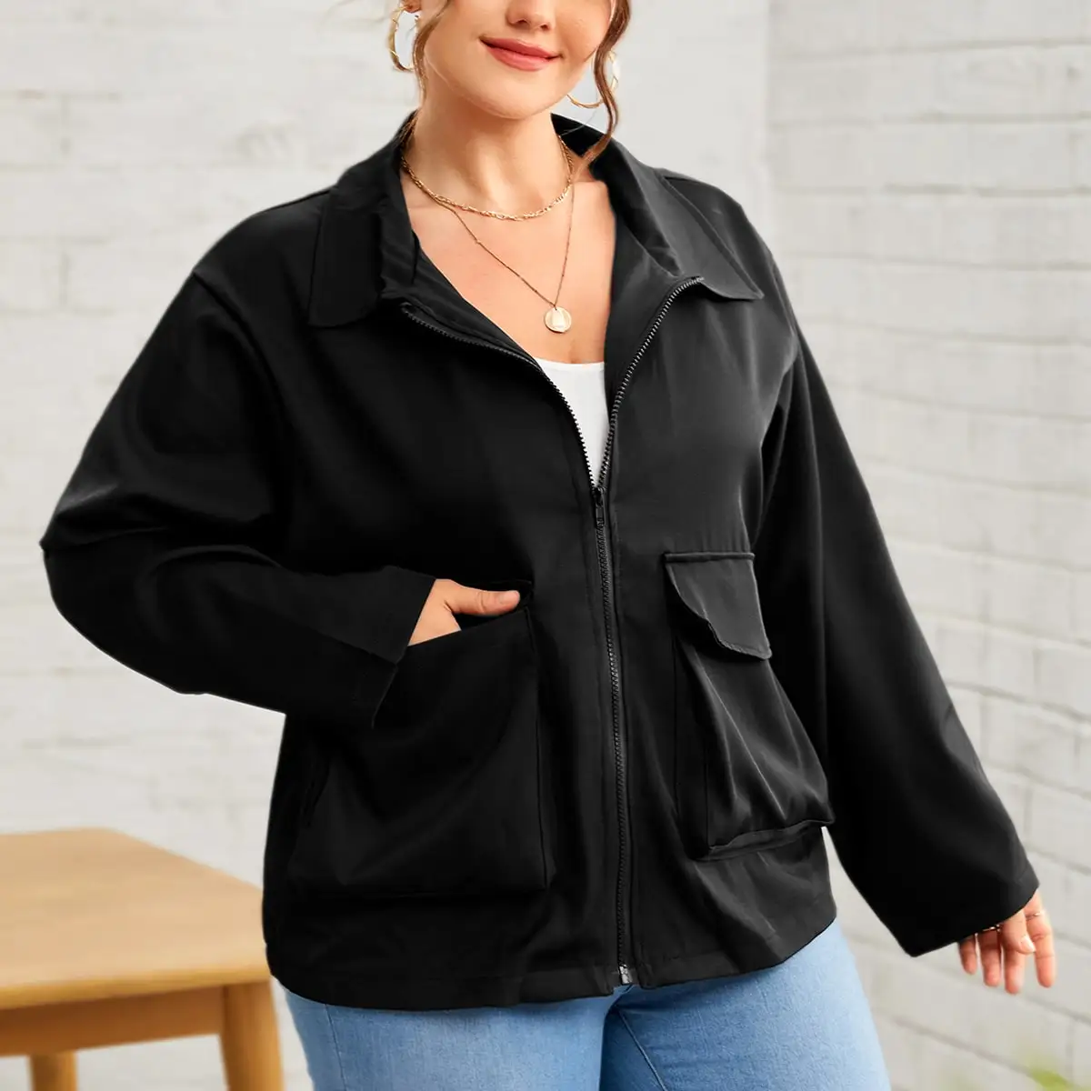 Step into sophistication with this Plus Size Elegant Autumn Coat, designed for the modern woman. Featuring a sleek zip front and practical pockets, this coat combines style and functionality. The loose fit and button-up collar offer a flattering silhouette for any occasion. Perfect for business or casual outings, stay warm and chic this season. Available in sizes up to 8 XL, it ensures a comfortable fit for all.