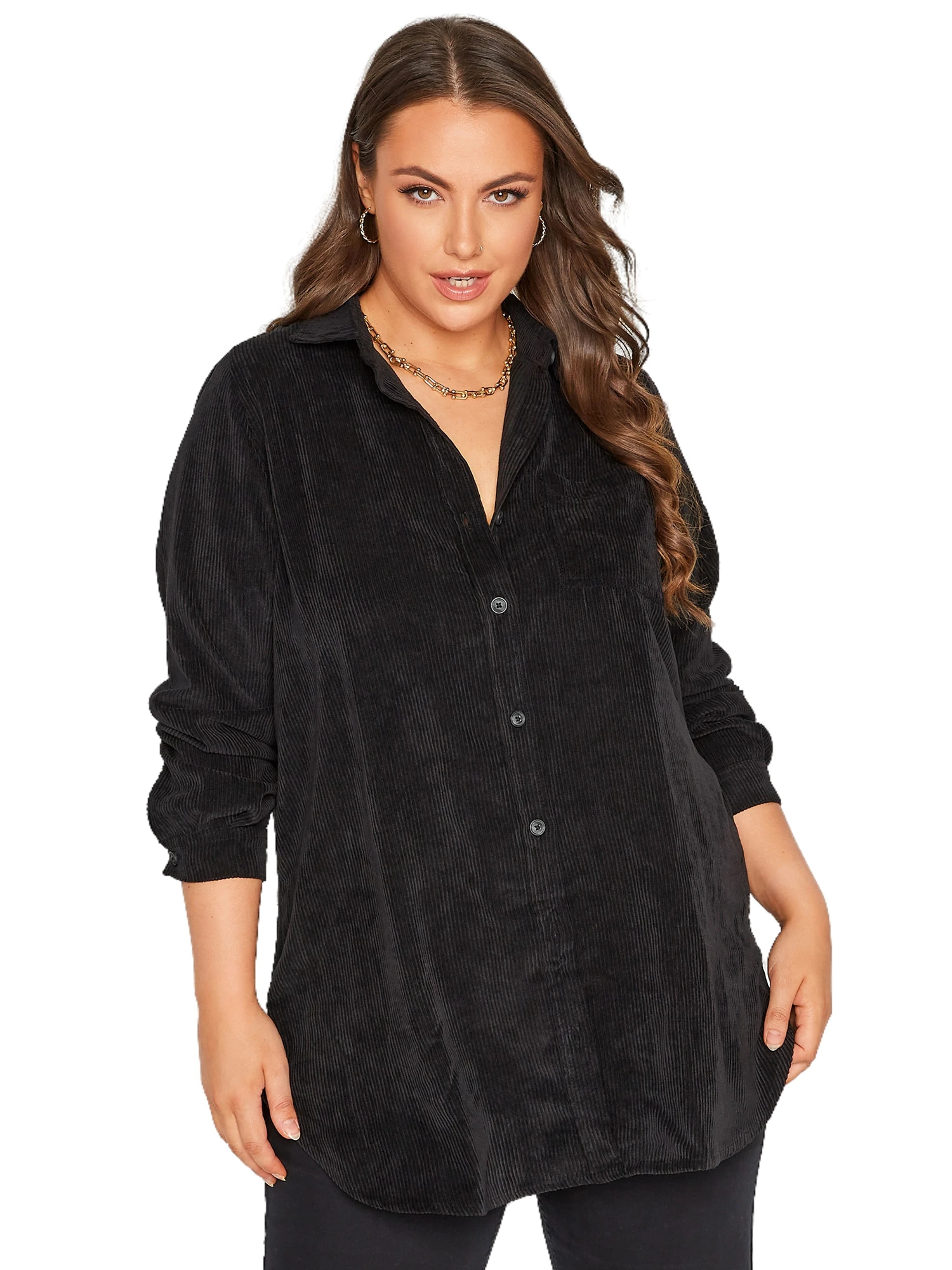 Embrace the season in style with the Plus Size Elegant Autumn Winter Corduroy Shirt, where comfort meets sophistication, creating an essential piece for the discerning woman.