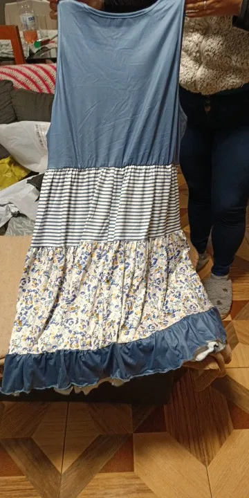 18 reviews for Plus Size Floral Stripe Vest Dress with Ruffle Hem Elegance