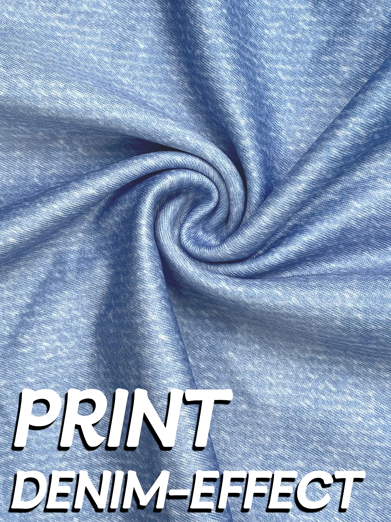 - Pattern Type: Chic and trendy faux denim print with stylish distressed detail