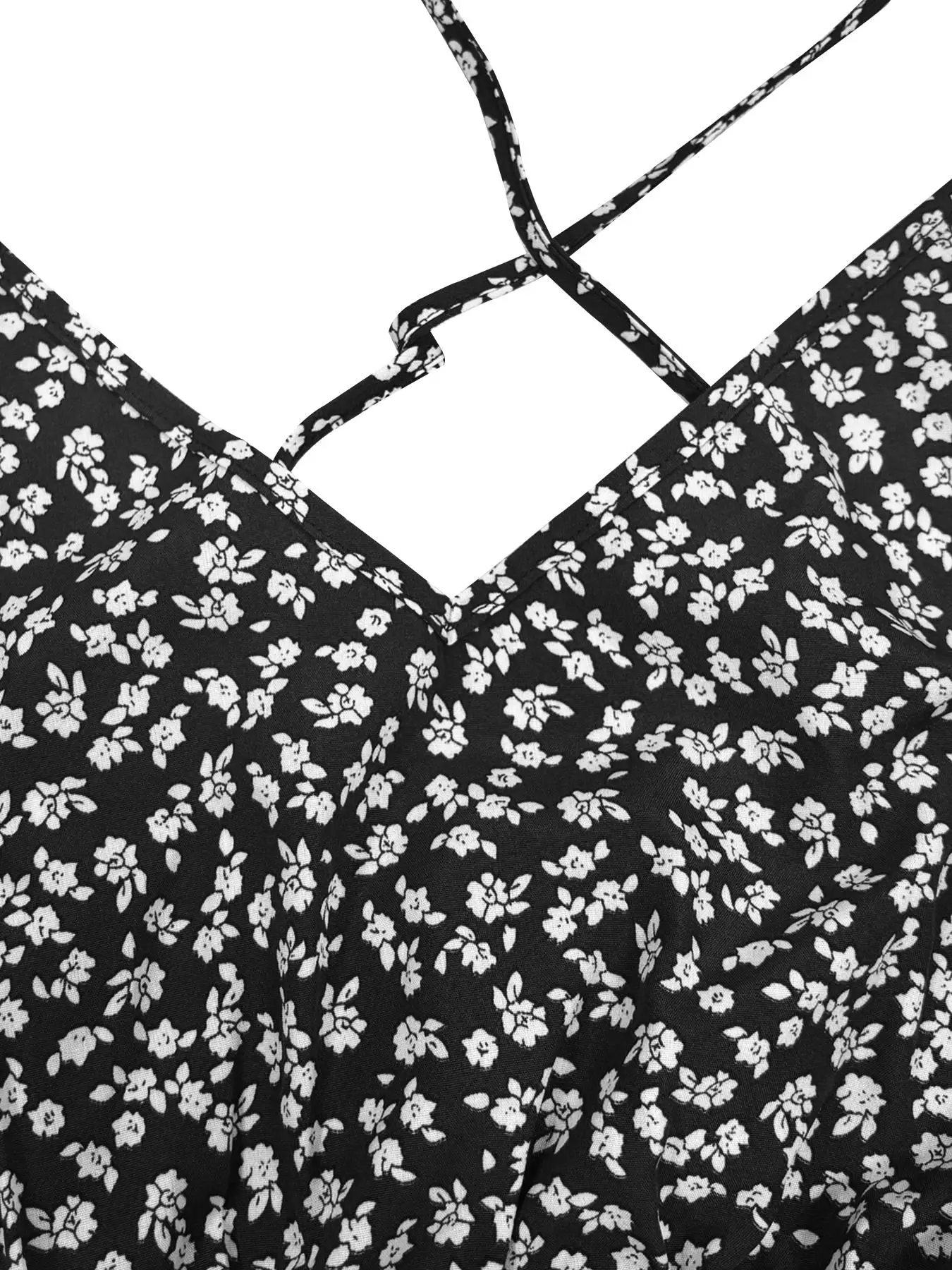Floral Plus Size V Neck Cami Maxi Dress for Beach Getaways