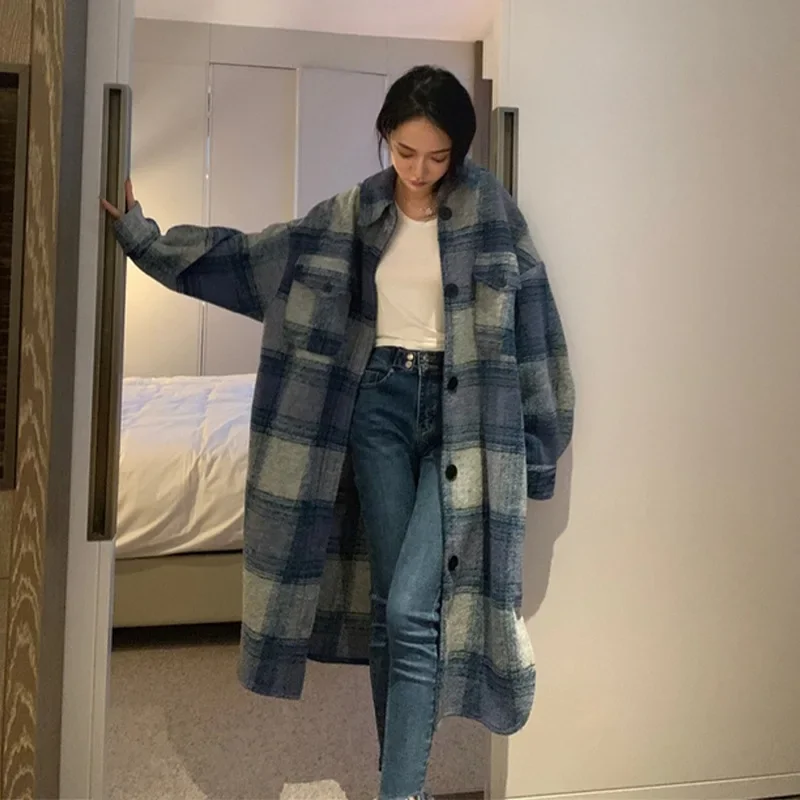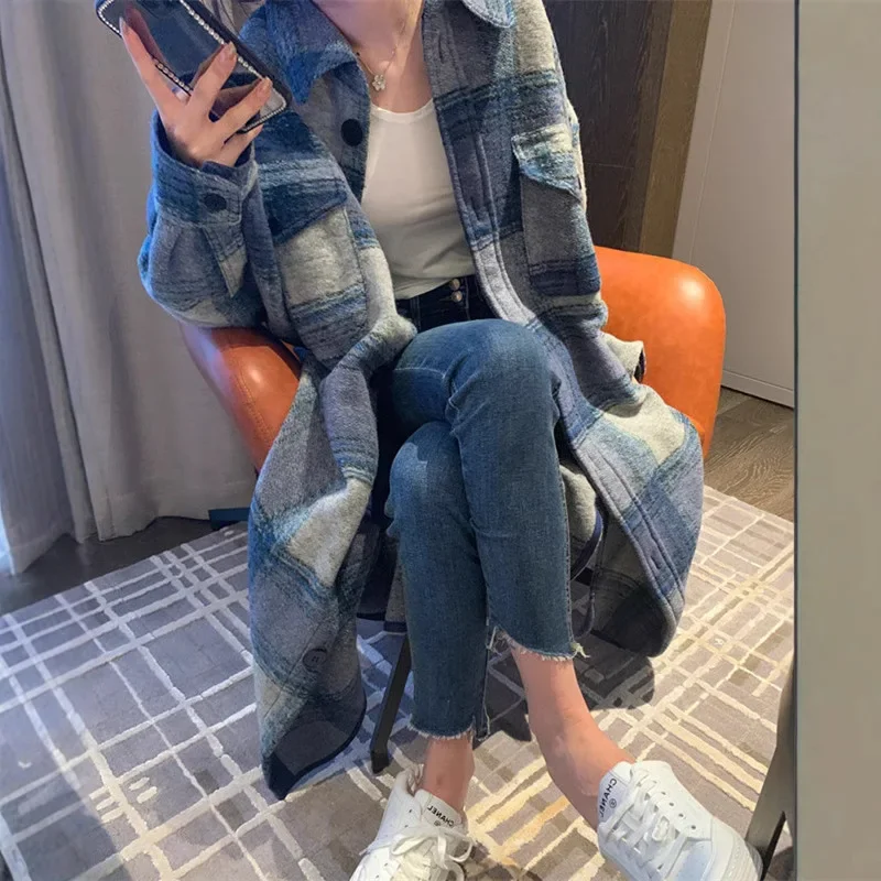 Introducing the Plus Size French Style Loose Long Plaid Woolen Coat