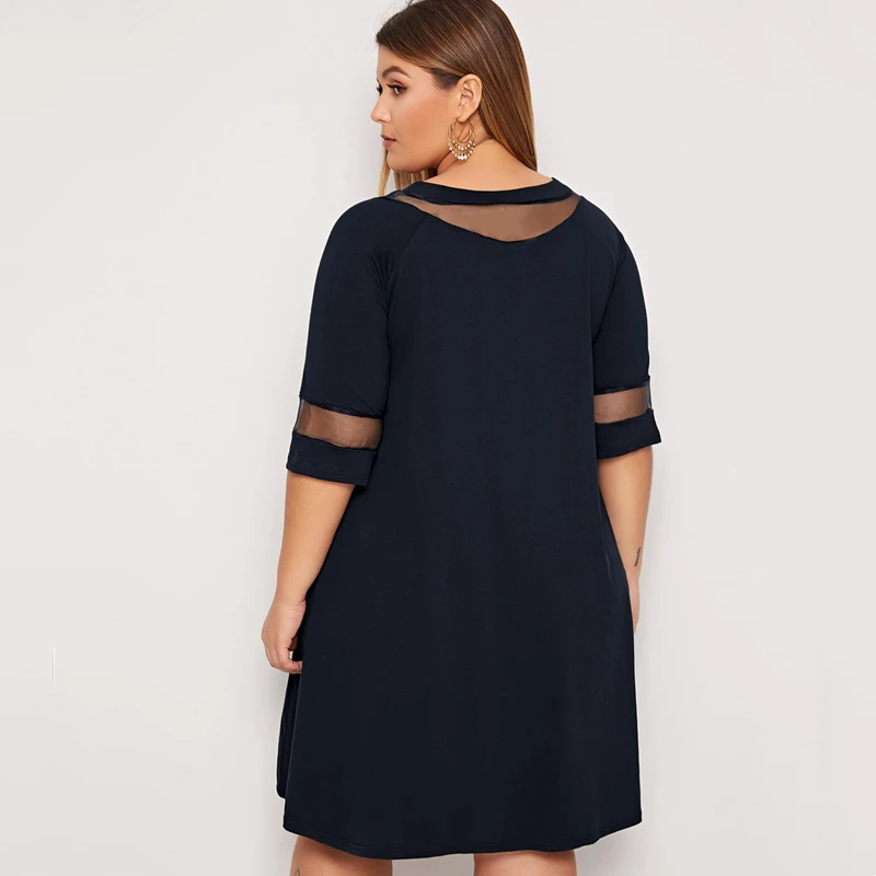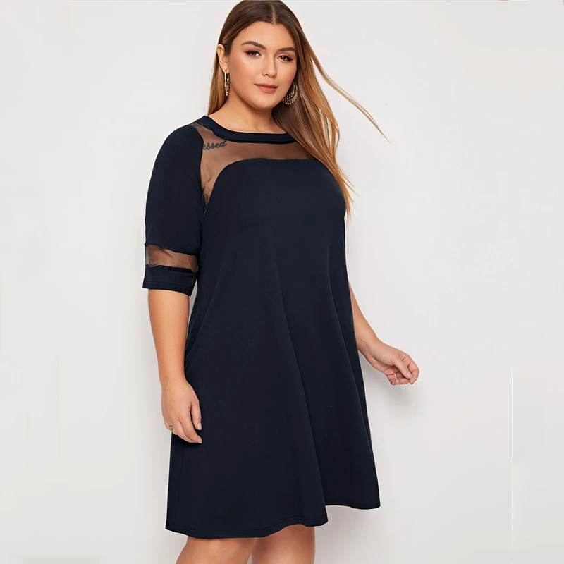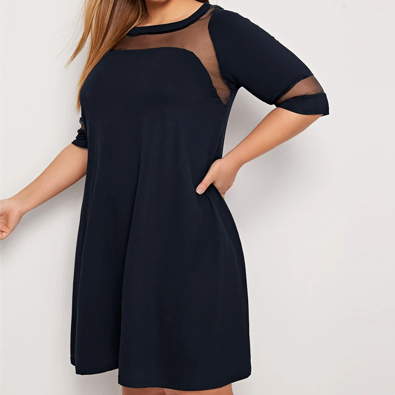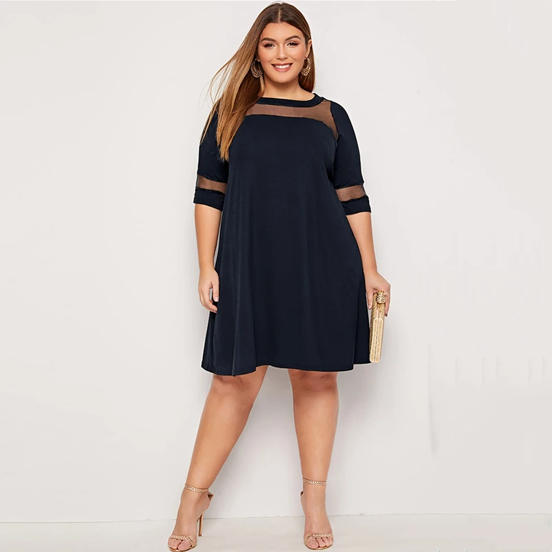 Elegant Plus Size Fit and Flare Dress with Mesh Sleeves