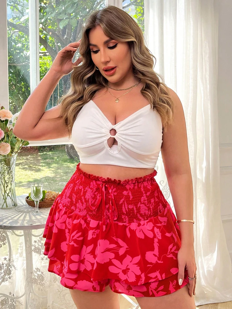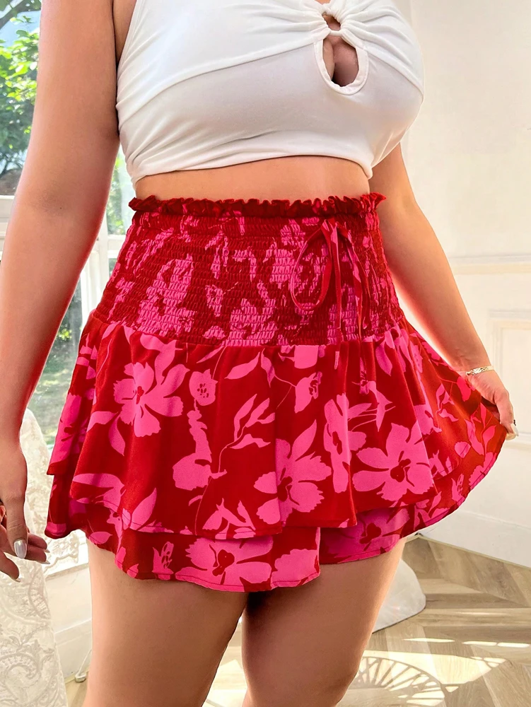 Bohemian Flower Print Plus Size Skirt for Effortless Elegance