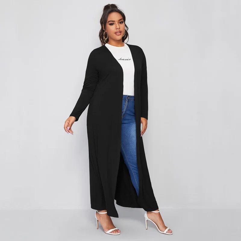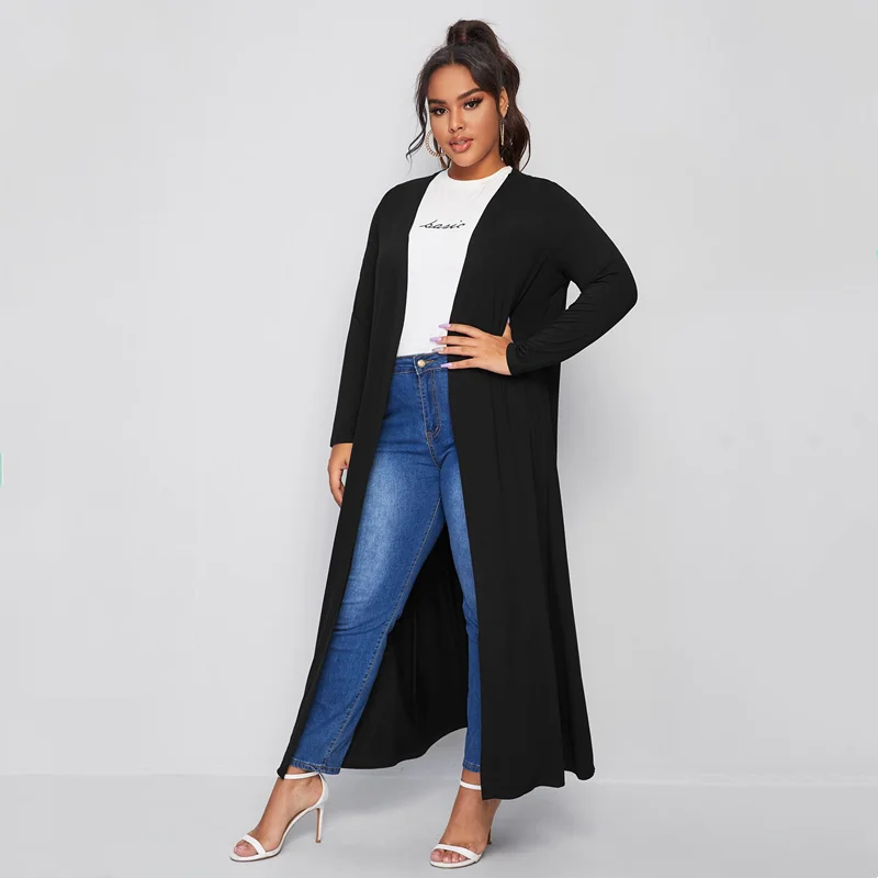 Elegant Plus Size Maxi Cardigan for Spring – Open Front Style