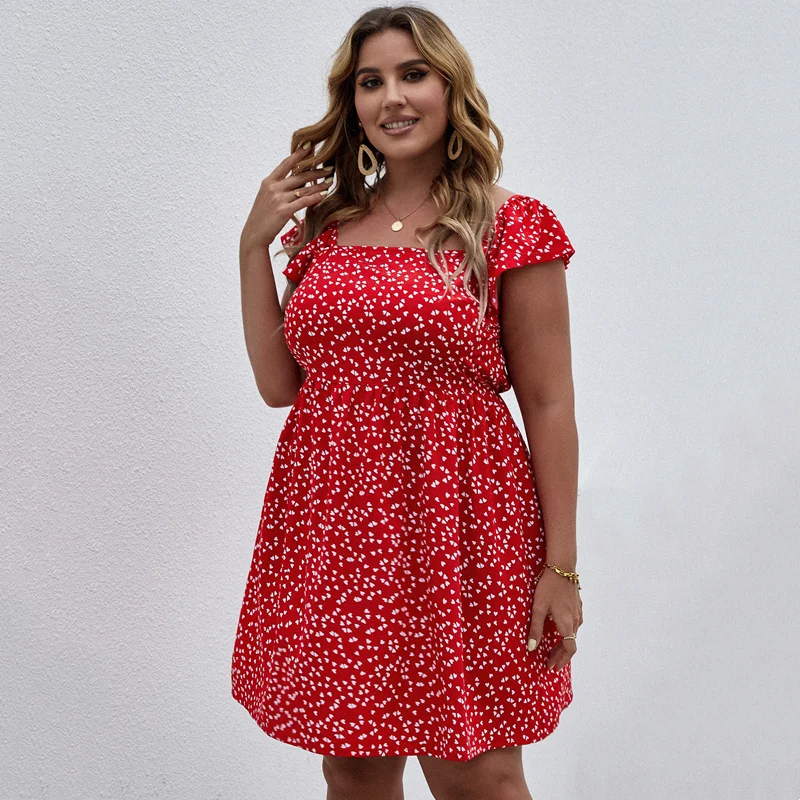 Plus Size Summer Floral Print Square Neck Dress for Women