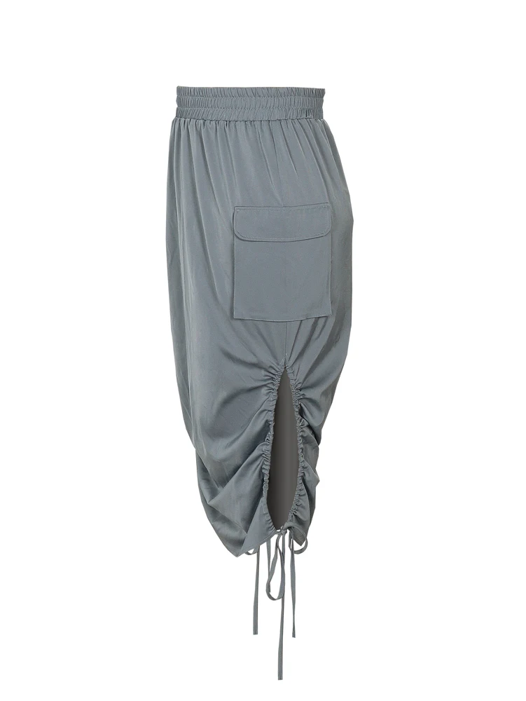 This half skirt is more than just a clothing item; it’s a celebration of style and comfort. The floor-length design offers a graceful movement, while the slight stretch in the fabric ensures you feel comfortable and confident throughout your day. Pair it with a simple top for a casual outing or dress it up with accessories for a night out. The timeless grey hue is both modern and classic, making it an everyday essential that can easily transition from day to night.