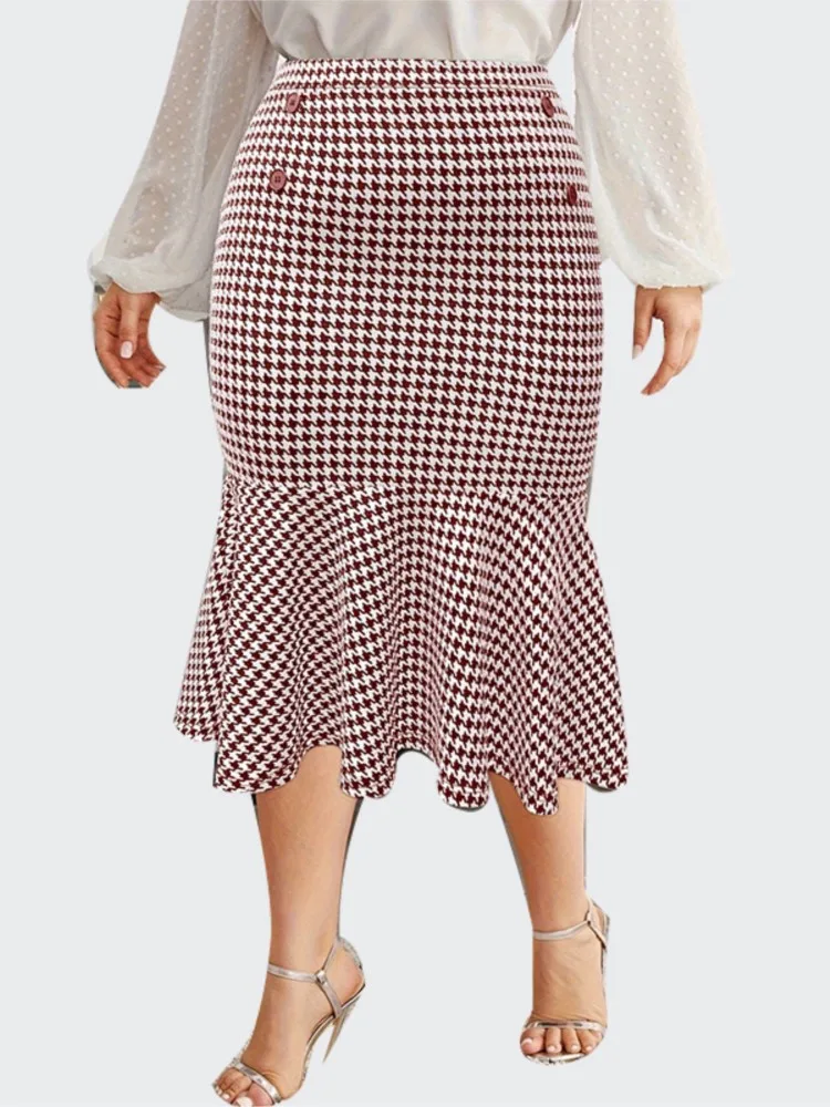 Step into summer with our Plus Size Polka Dot Print Skirts, designed for the confident woman. Featuring a flattering high waist and ruffle pleated fishtail silhouette, these tea-length skirts offer both style and comfort. Crafted from a soft blend of polyester and cotton, they provide a slight stretch for a perfect fit. Available in six captivating colors, these skirts are a chic addition to any wardrobe. Embrace your elegance and make a statement this season.