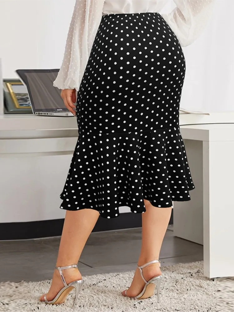 Vintage Polka Dot Ruffle Fishtail Skirt – Curves Collection