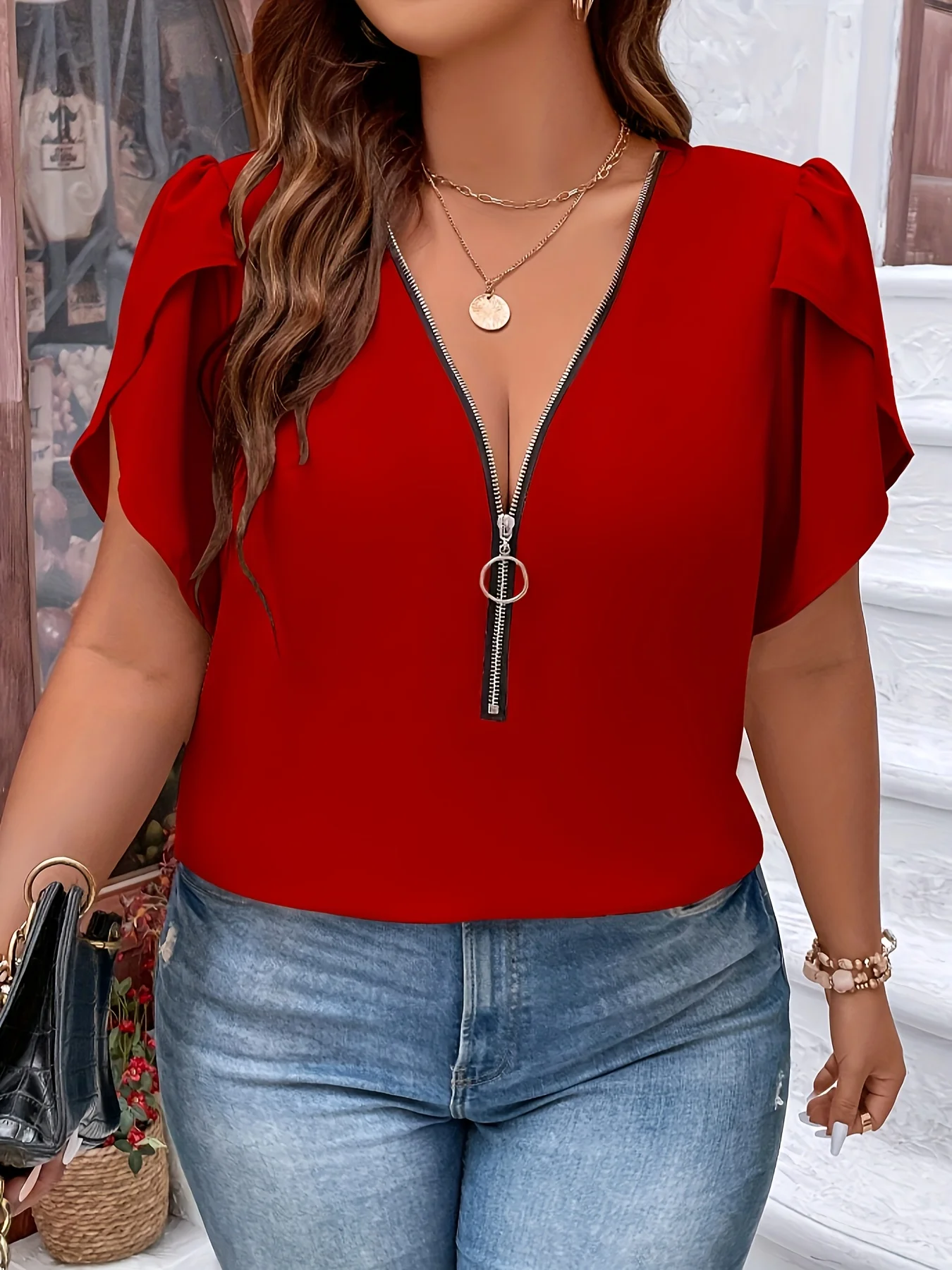 Plus Size Elegant Chiffon Blouse with Zipper – Summer Style