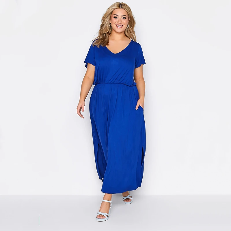 3 reviews for Plus Size V-Neck Royal Blue Casual Maxi Dress for Summer