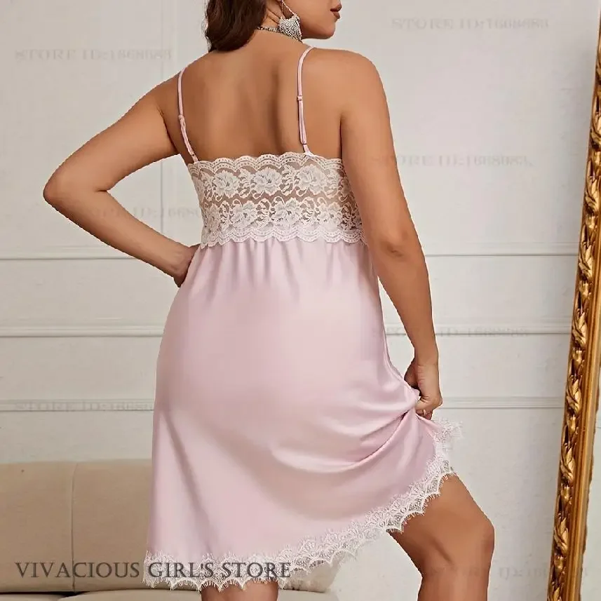 Indulge in luxury with this stunning suspender nightgown, designed for every body. Crafted from soft satin ice silk, it features delicate lace detailing and a flattering above-knee length. Available in elegant colors like black, red, and pink, this versatile piece is perfect for lounging or special occasions. Experience comfort and sophistication all year round.