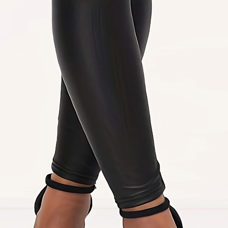 Pair them with a flowing tunic for a sophisticated office outfit or a trendy crop top for a night on the town. The sleek faux leather finish adds an element of modernity, making these leggings a statement piece in any wardrobe. With their flattering silhouette and versatile design, they are perfect for any occasion, ensuring you stay stylish and comfortable all day long.
