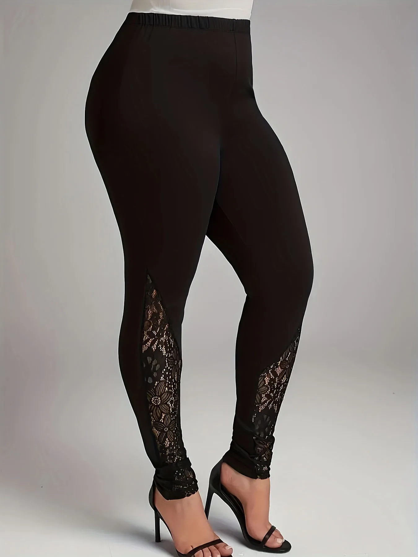 Elegant Plus Size Women’s Oversized Leggings with Lace Detail