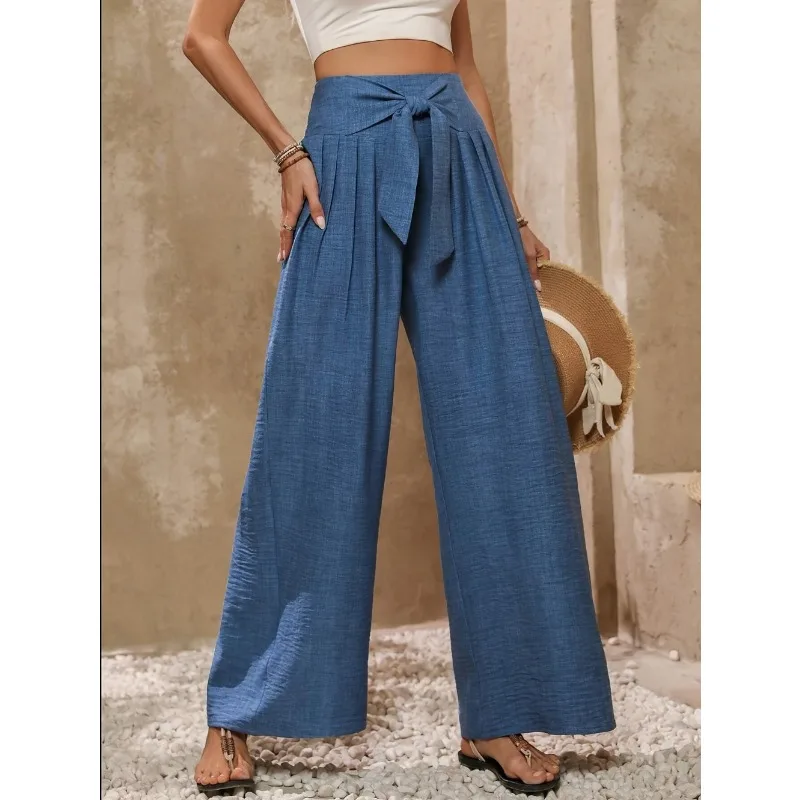 Step into luxury with these Plus Size Wide Leg Palazzo Pants. Designed for effortless style, they feature a high waist and flowy silhouette for ultimate comfort. Perfect for beach days or casual outings, the ankle-length design and elegant lace-up detail make these trousers a must-have in your wardrobe. Available in chic blue and apricot, they promise to elevate your summer look. Embrace sophistication and versatility with every wear.