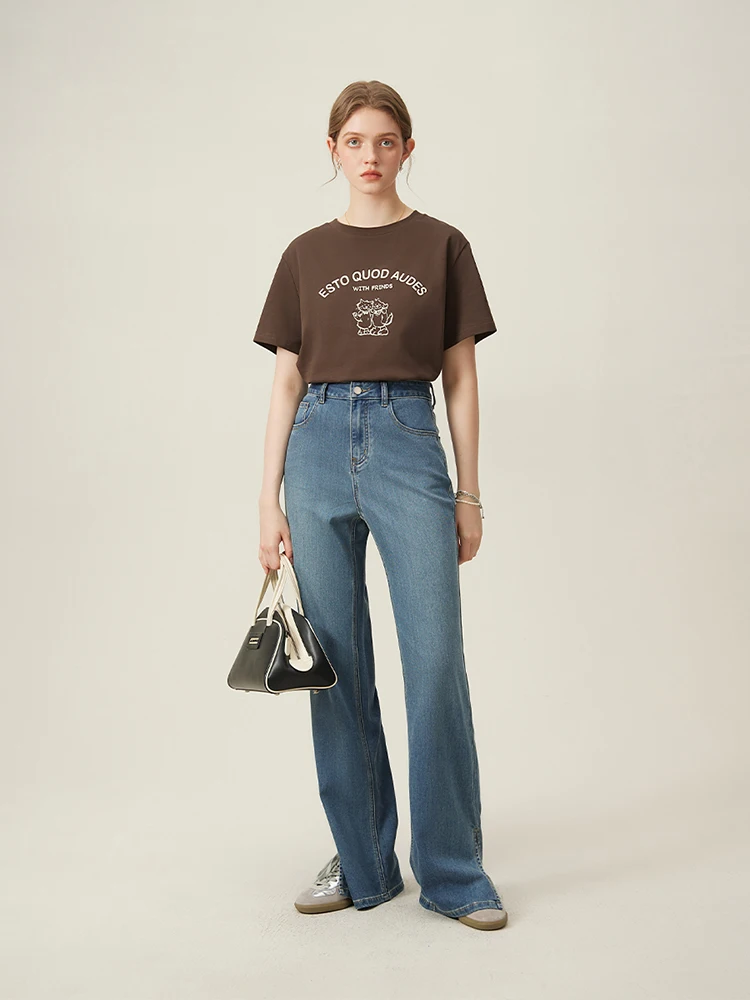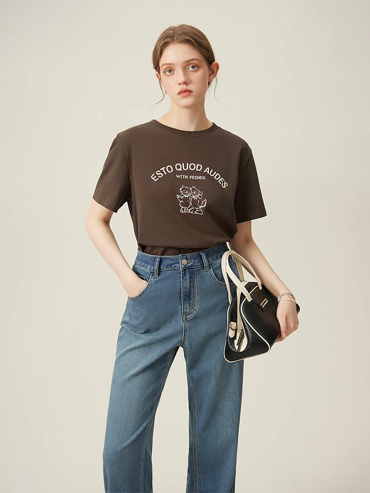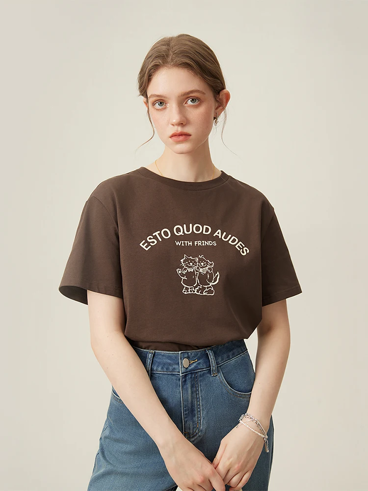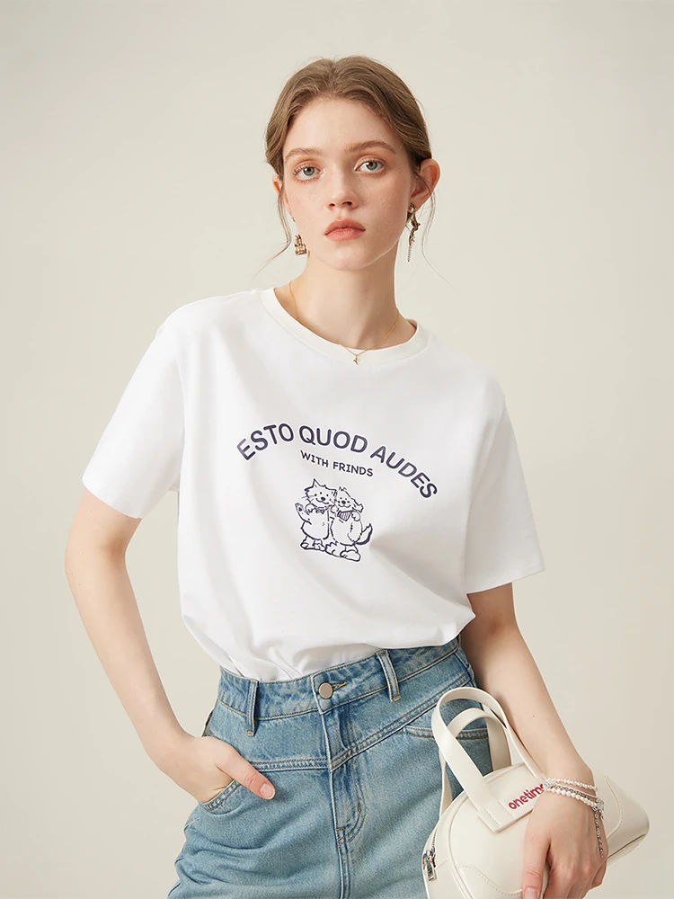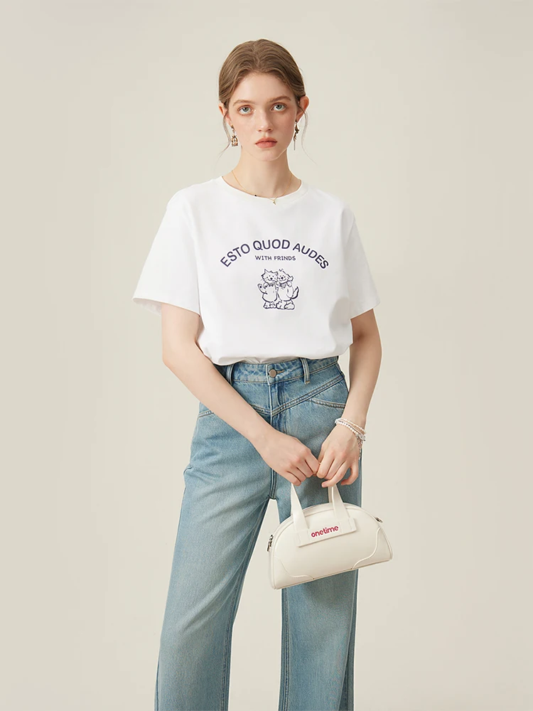 Retro-Inspired Relaxed Fit Round Neck Cotton Tee