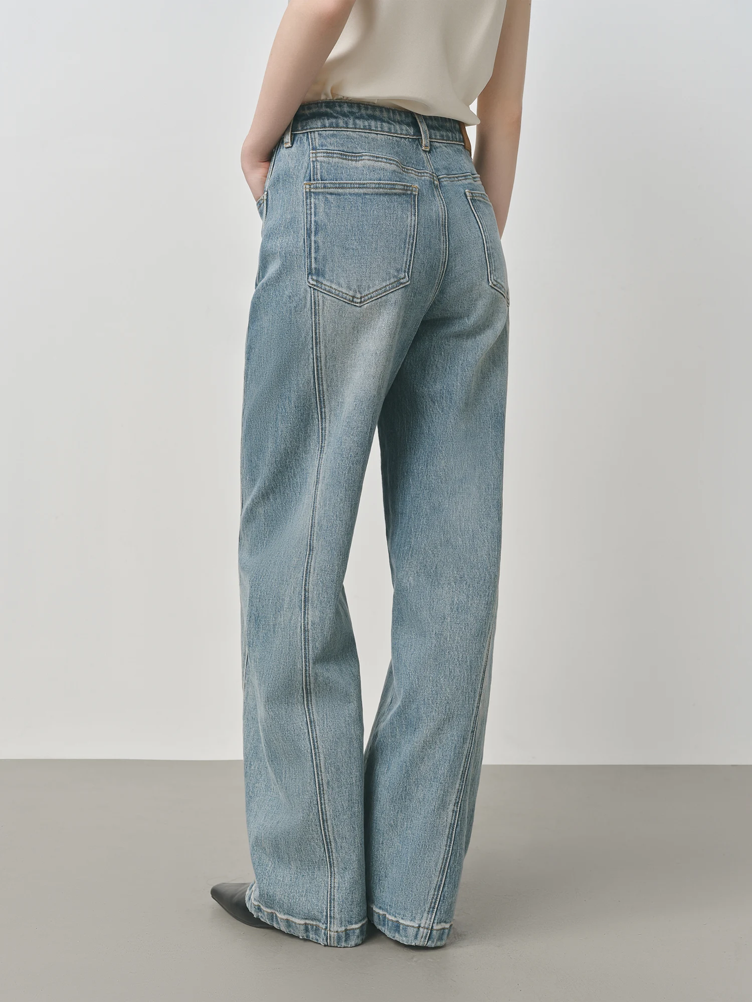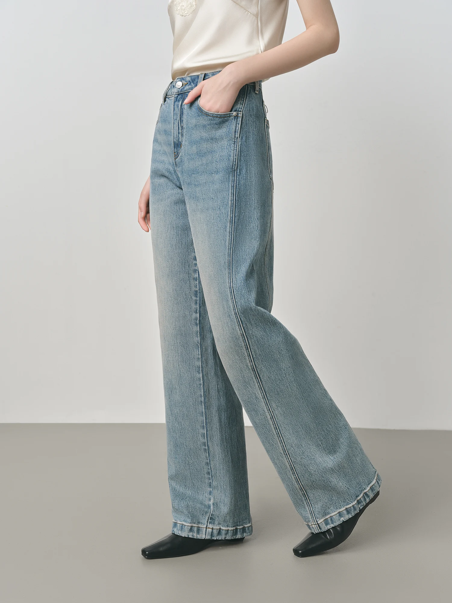 - Light wash adds a vintage touch to your ensemble.