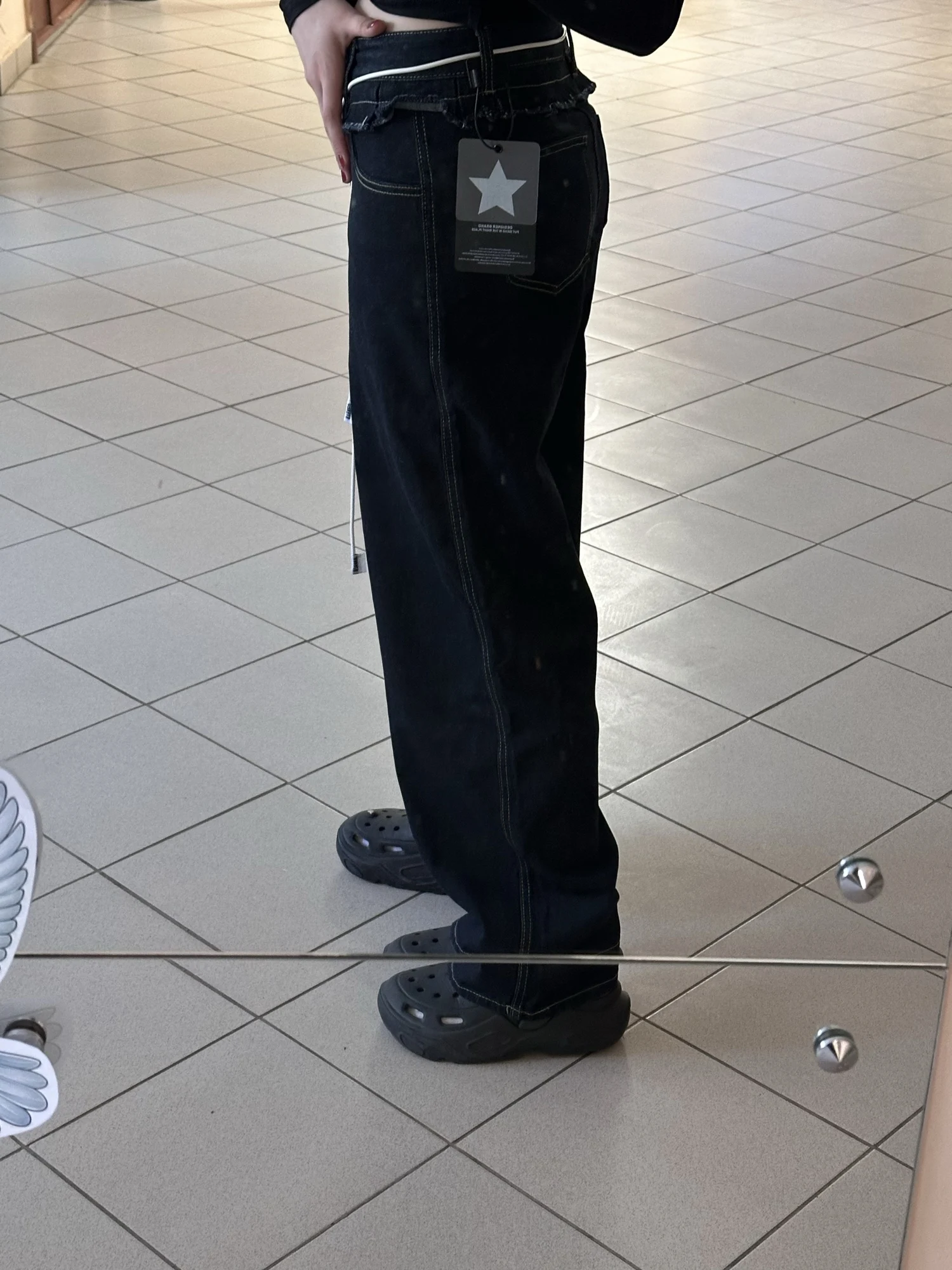 What is the fit like?A: The fit is loose and high-waisted, allowing for ease of movement and a flattering silhouette.