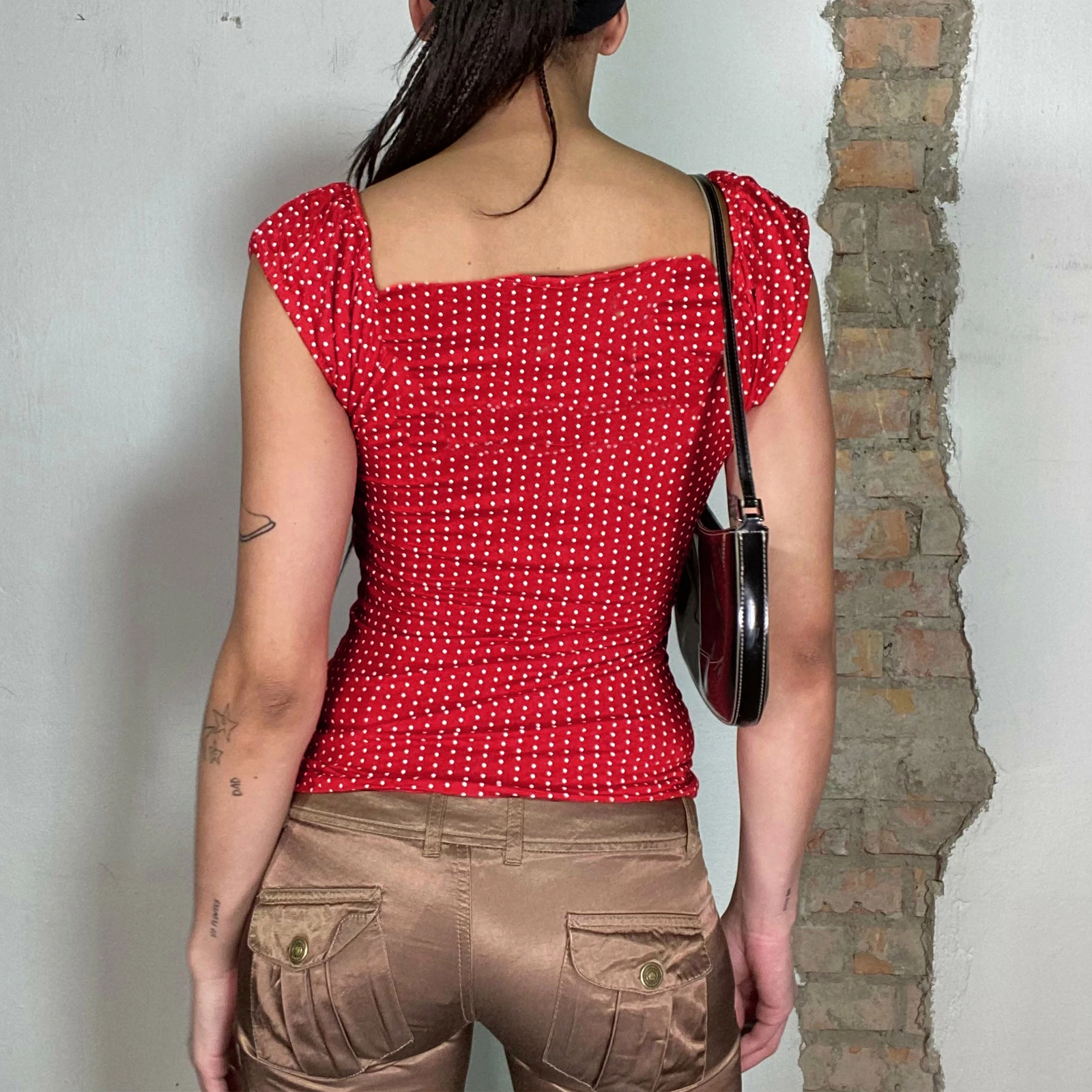 Romantic Vintage Lace-Up Polka Dot Milkmaid Cap-Sleeve Top