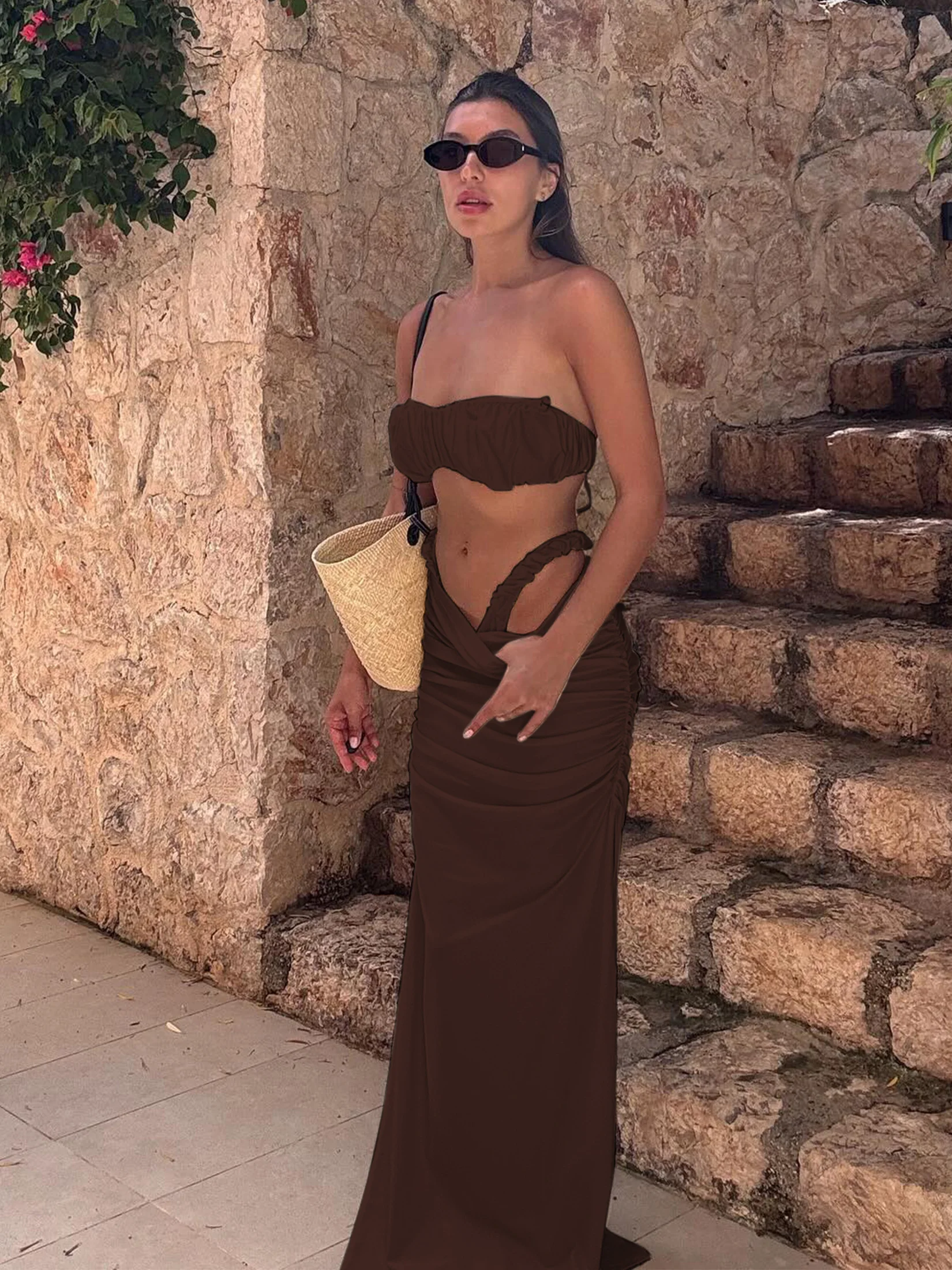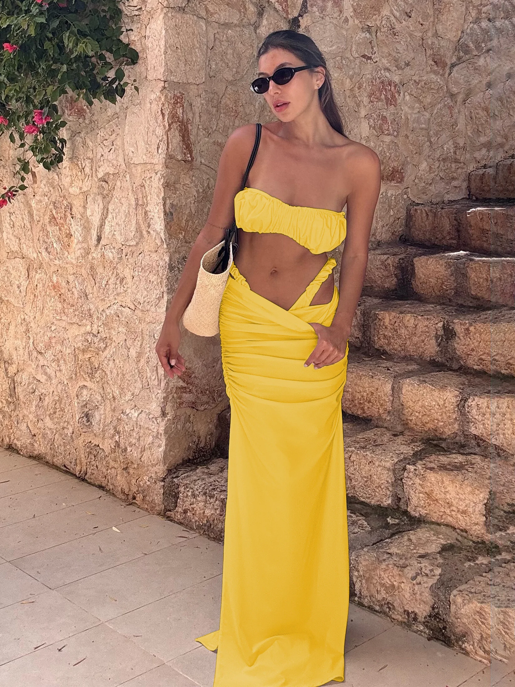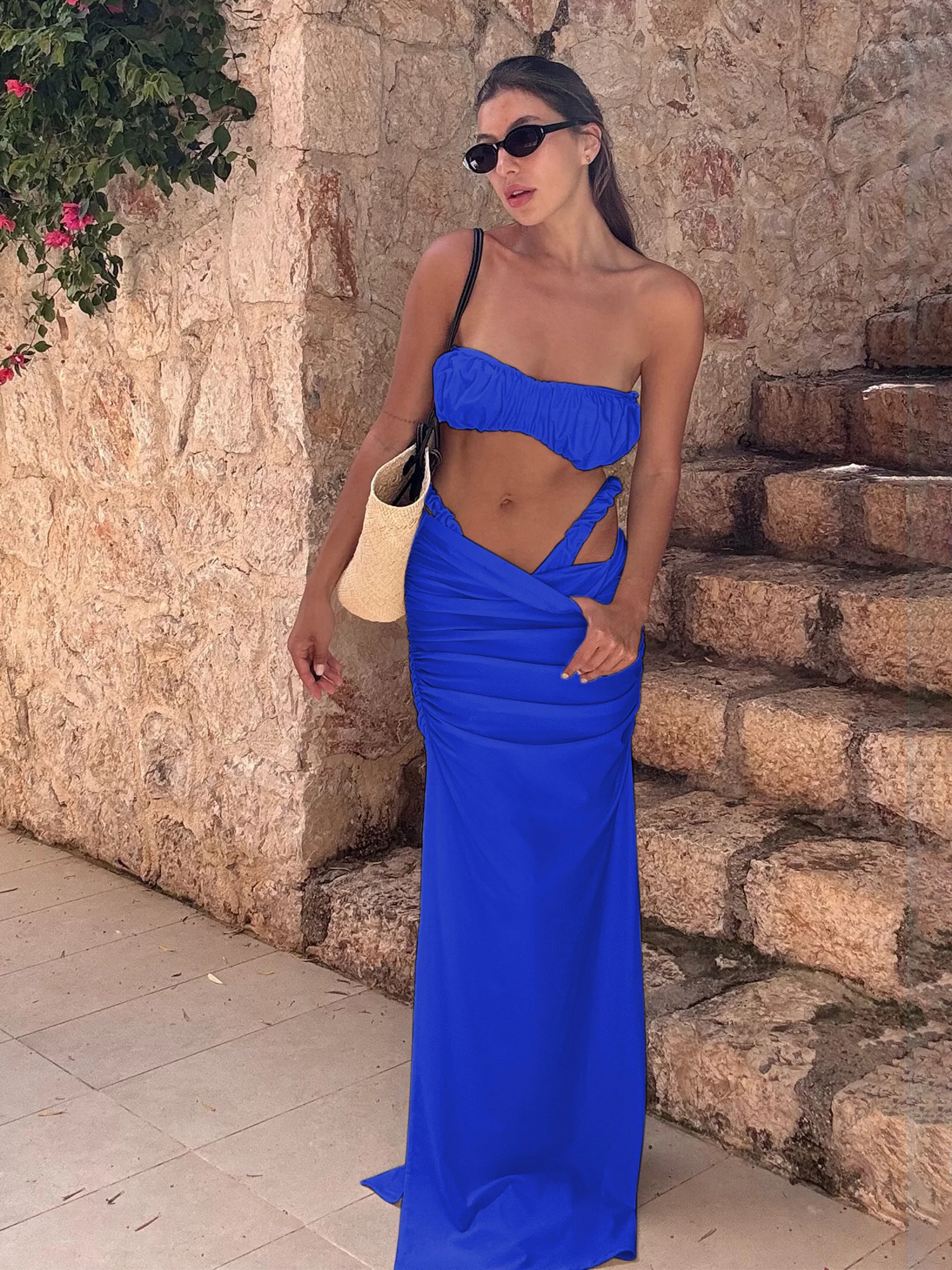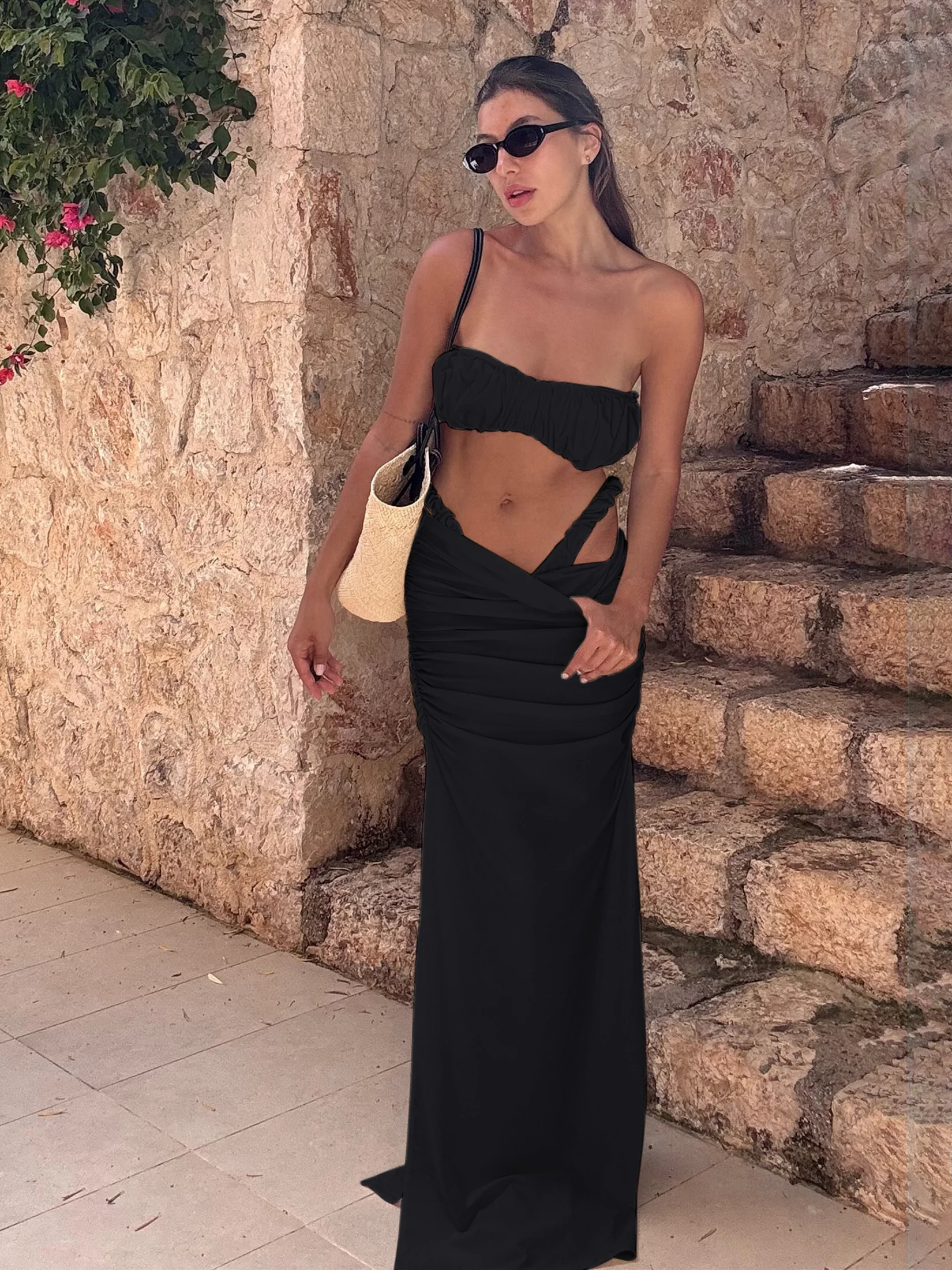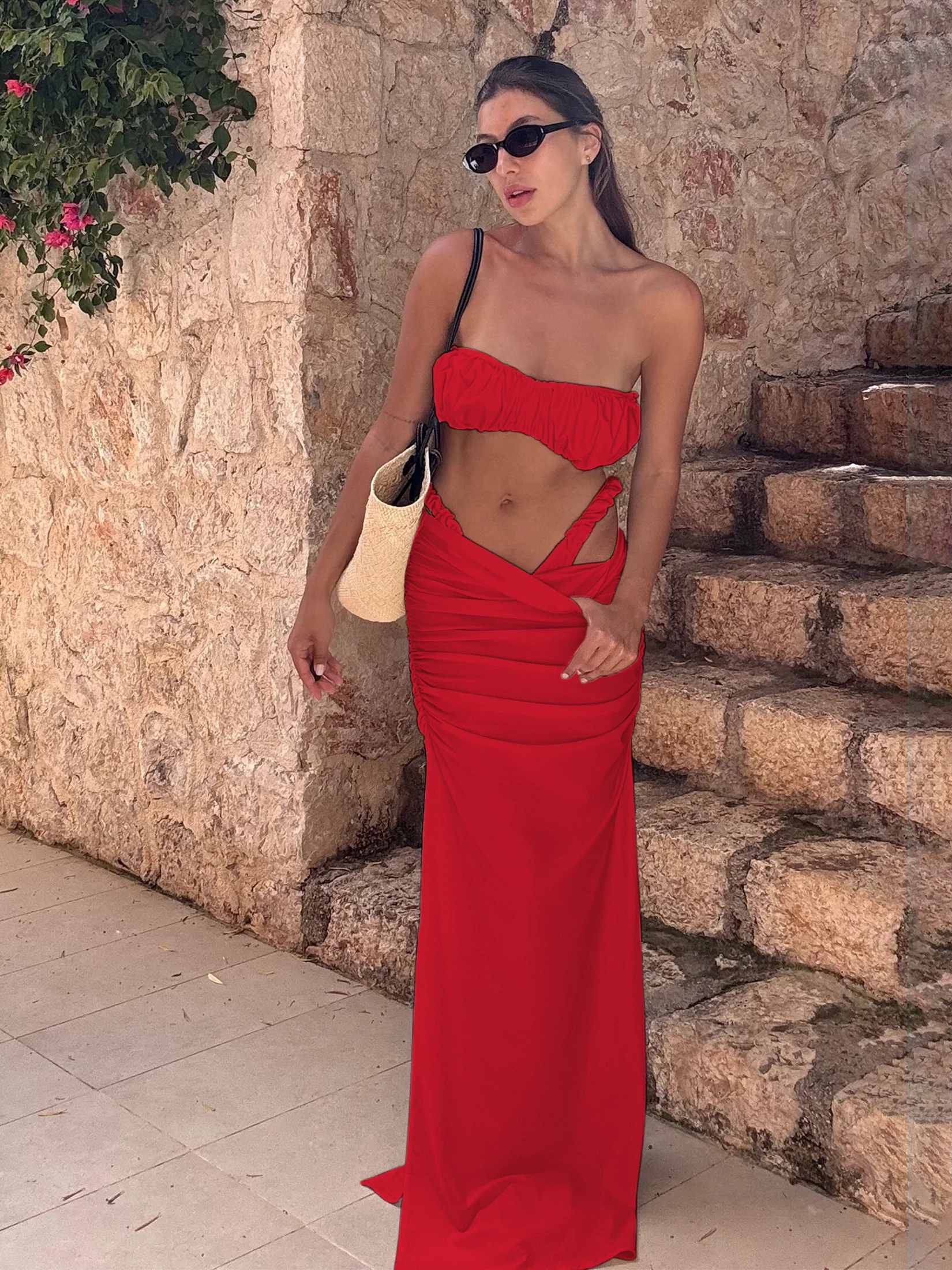 Step into summer with confidence and elegance in our Chic Ruched Bandeau Bikini Set with Flowing High-Cut Skirt. Perfectly designed for the modern woman who cherishes both style and comfort, this exquisite two-piece set is your ideal companion for beach outings, pool parties, and luxurious spa days. With its flattering silhouette and sophisticated details, this bikini set promises to celebrate your natural beauty while providing effortless allure.