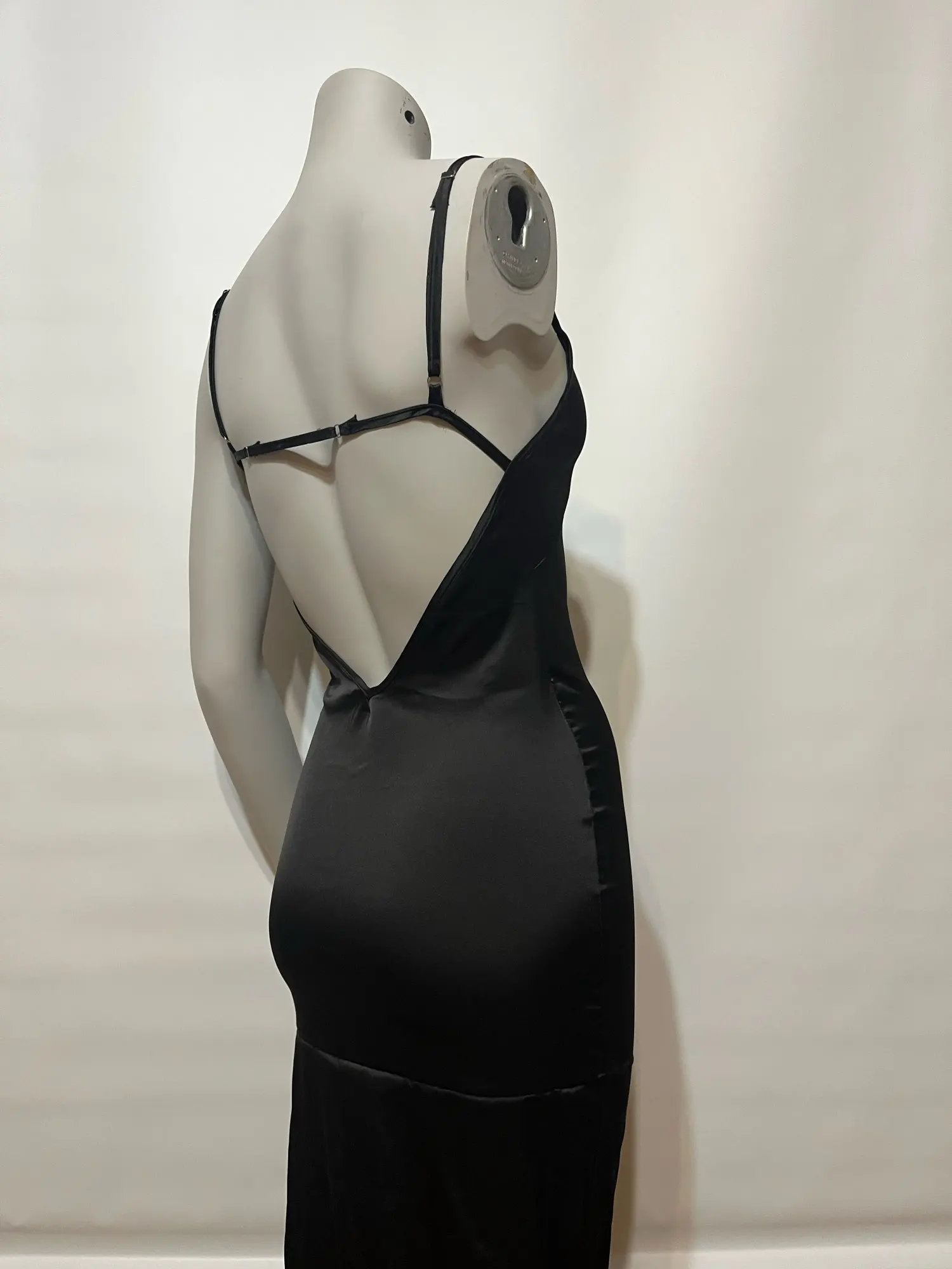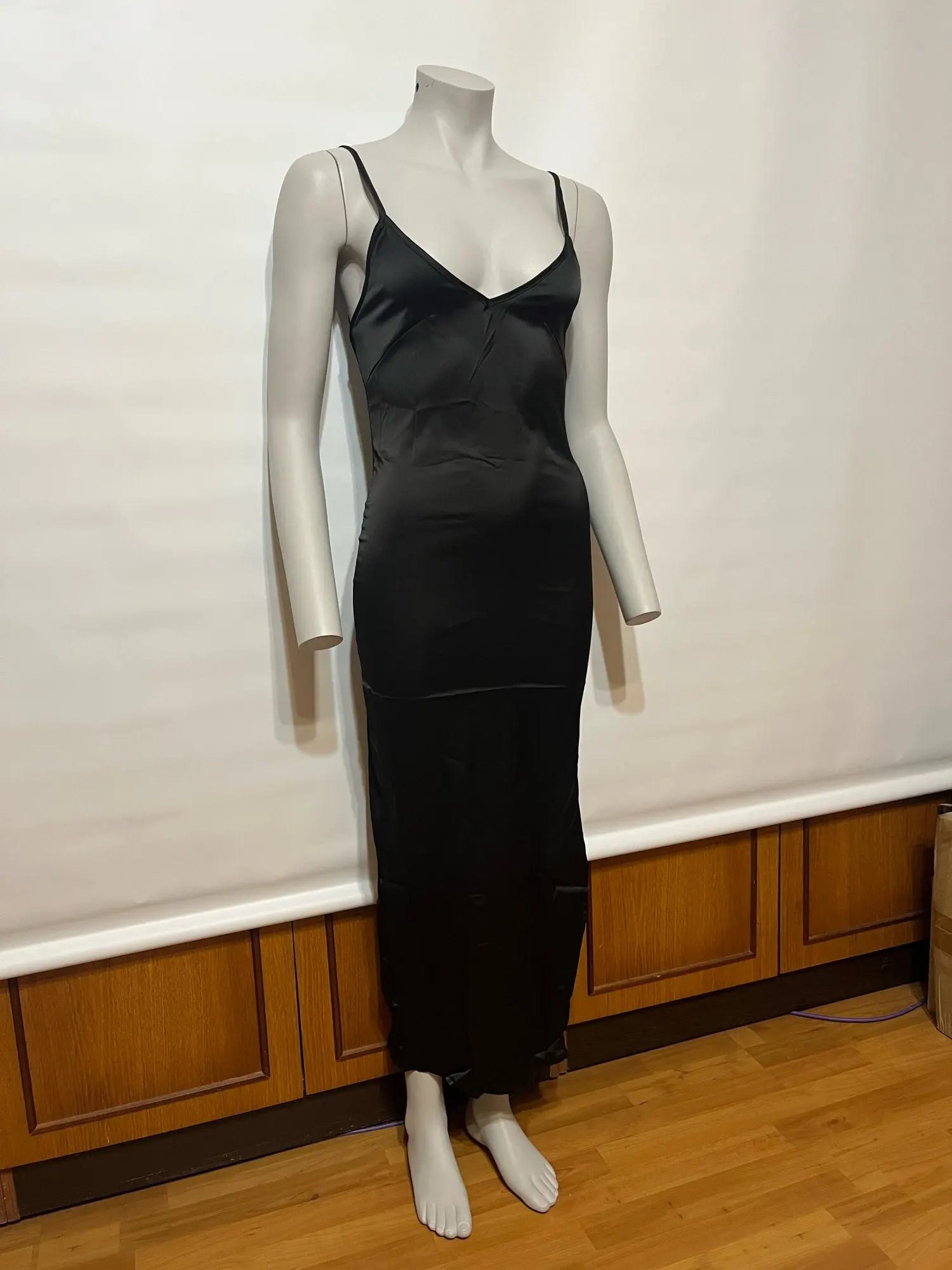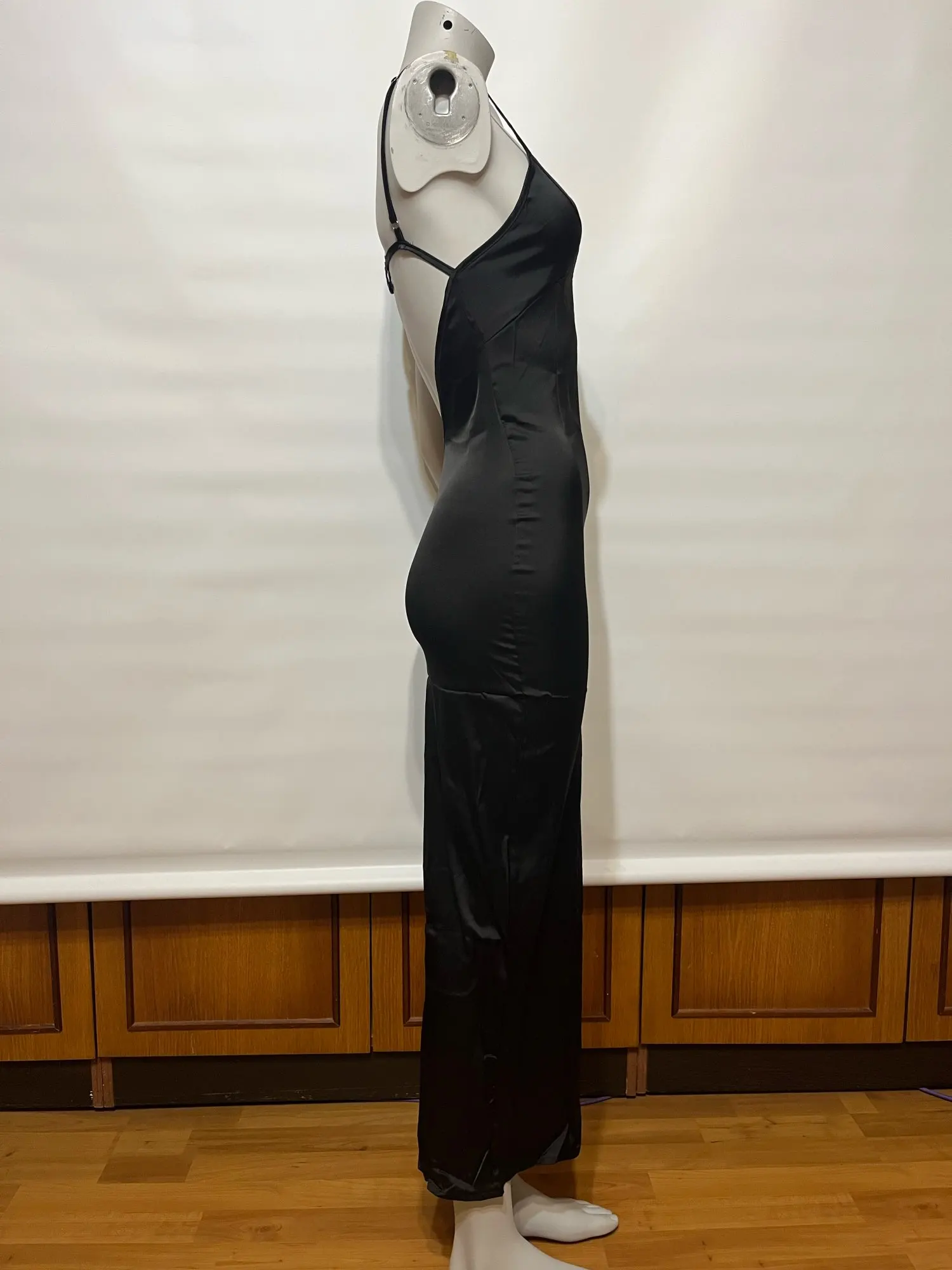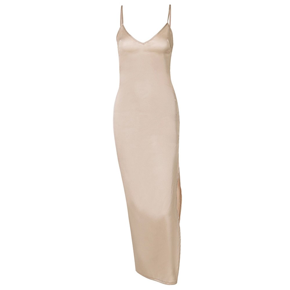 4 reviews for Satin Spaghetti Strap Split Backless Maxi Dress