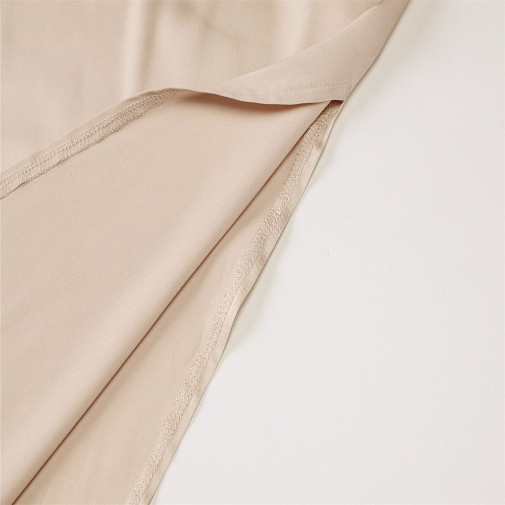 Fabric & Care: Made of polyester satin, this dress has a lightweight feel with a subtle sheen. The fabric’s slight elasticity supports comfort in warm weather. For care, gentle hand wash or machine wash on a delicate cycle is recommended to preserve the satin finish.