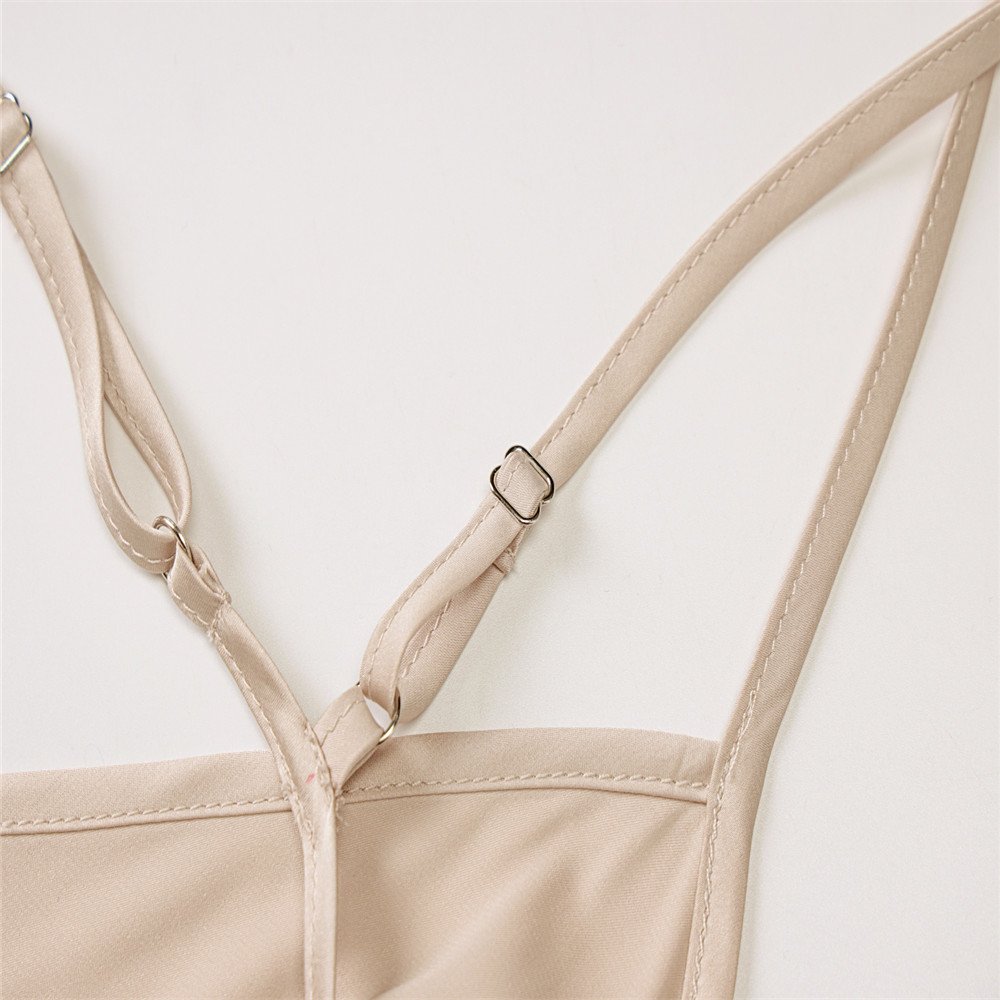 The Satin Spaghetti Strap Split Backless Maxi Dress offers a refined silhouette for those seeking understated elegance during warmer months. Crafted from slightly stretchy polyester satin, this ankle-length dress features a smooth, tactile finish characteristic of satin fabric. Its asymmetrical silhouette is enhanced by a split backless design that adds subtle movement and visual interest.