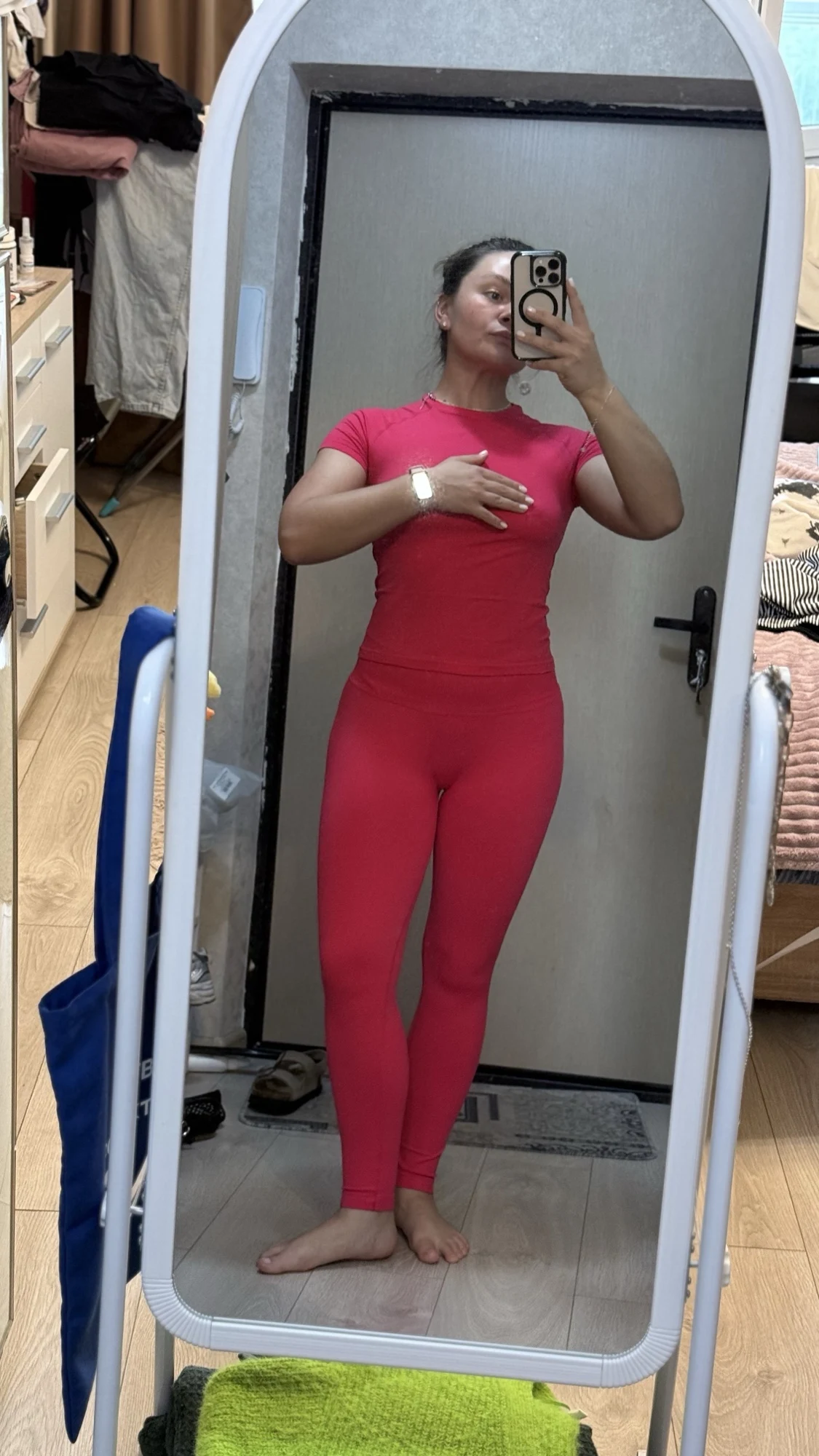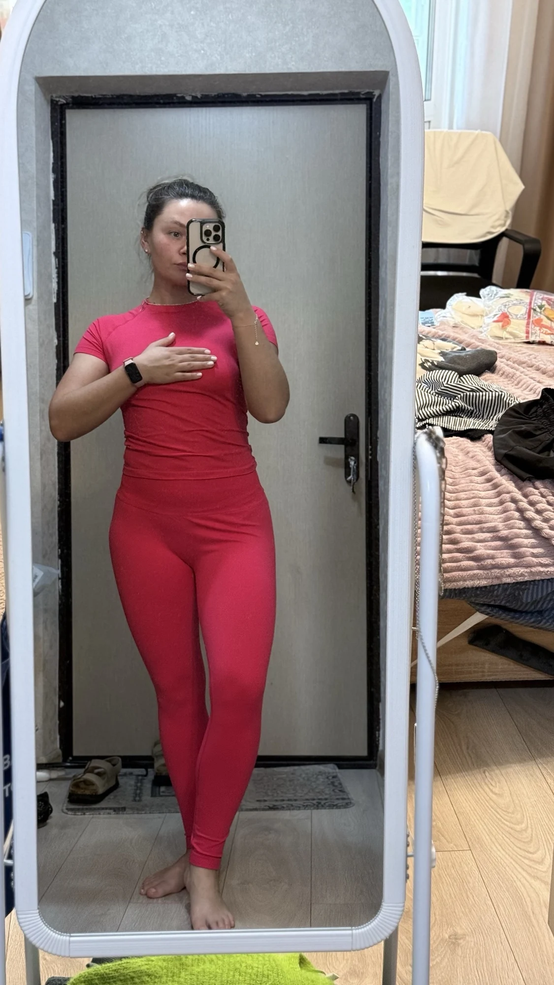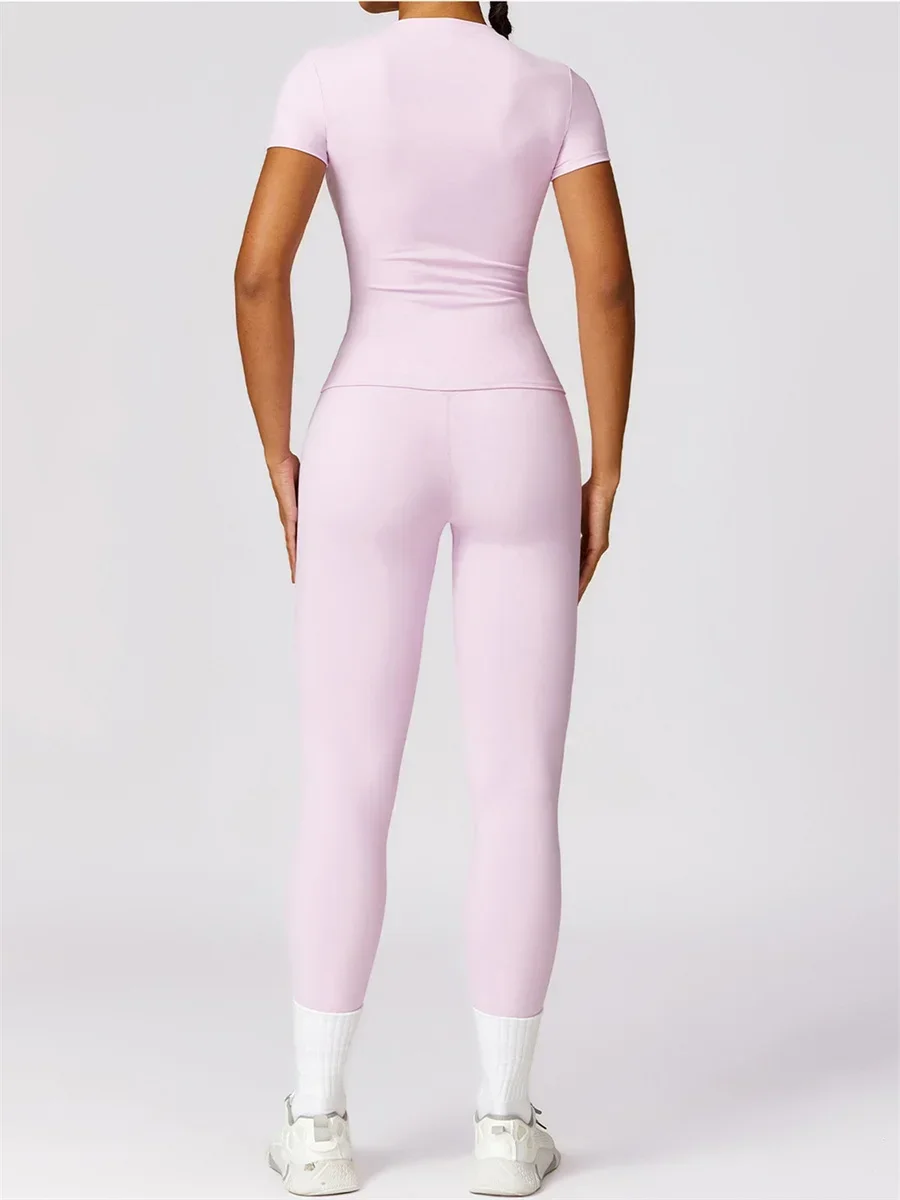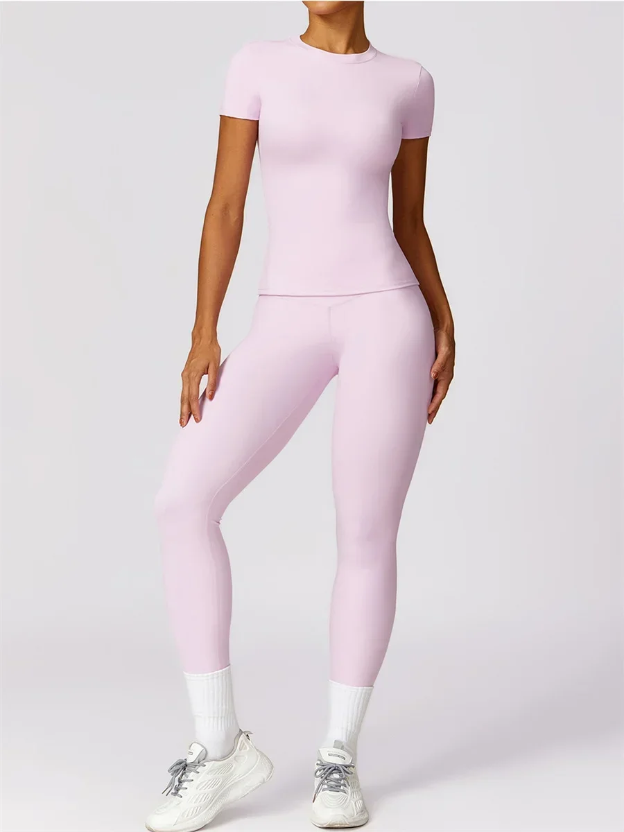 This seamless yoga set is not just activewear; it’s a statement of confidence and grace. The breathable fabric moves with you, allowing complete freedom during workouts while keeping you comfortable and stylish. Imagine transitioning from a challenging yoga class to a casual outing without needing a change. The high-waist leggings provide gentle support, ensuring a smooth and flattering fit, while the short sleeve top adds a touch of elegance. Perfect for morning workouts, afternoon yoga sessions, or simply lounging in style, this set is your all-in-one solution for everyday elegance.