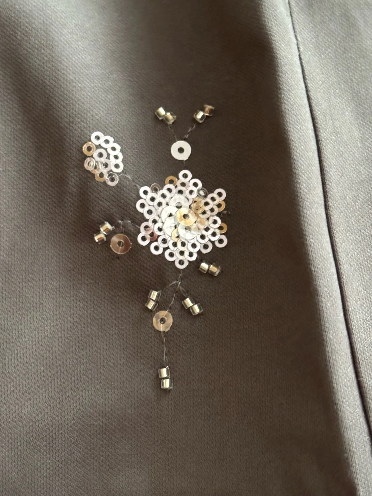 Styling Suggestions: Pair the set with simple leather flats and a structured tote for a polished daytime event or office setting. For relaxed evenings, opt for minimalist heels and delicate jewellery to complement the subtle shimmer. Travel in style by layering a lightweight scarf and sleek sunglasses, maintaining comfort and sophistication. This ensemble also works well for casual social gatherings when styled with neutral-toned accessories.