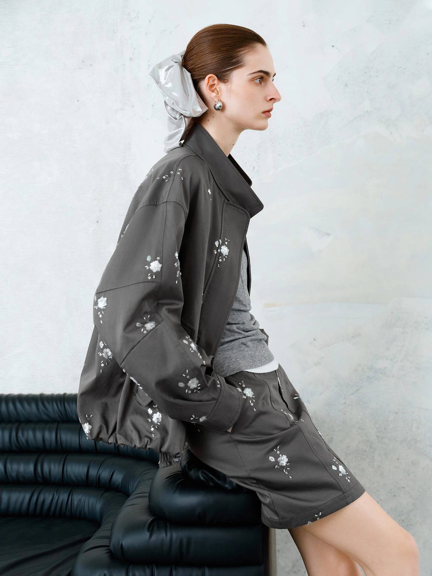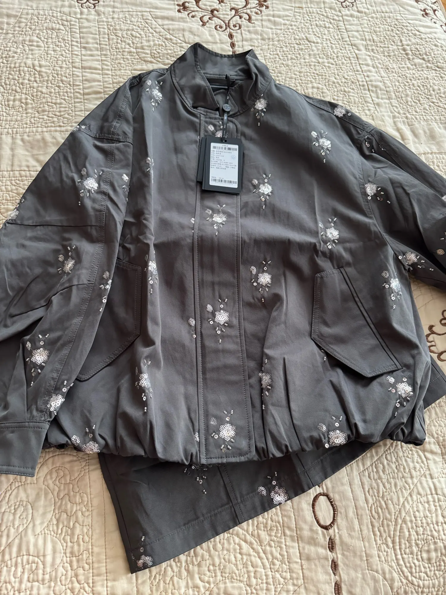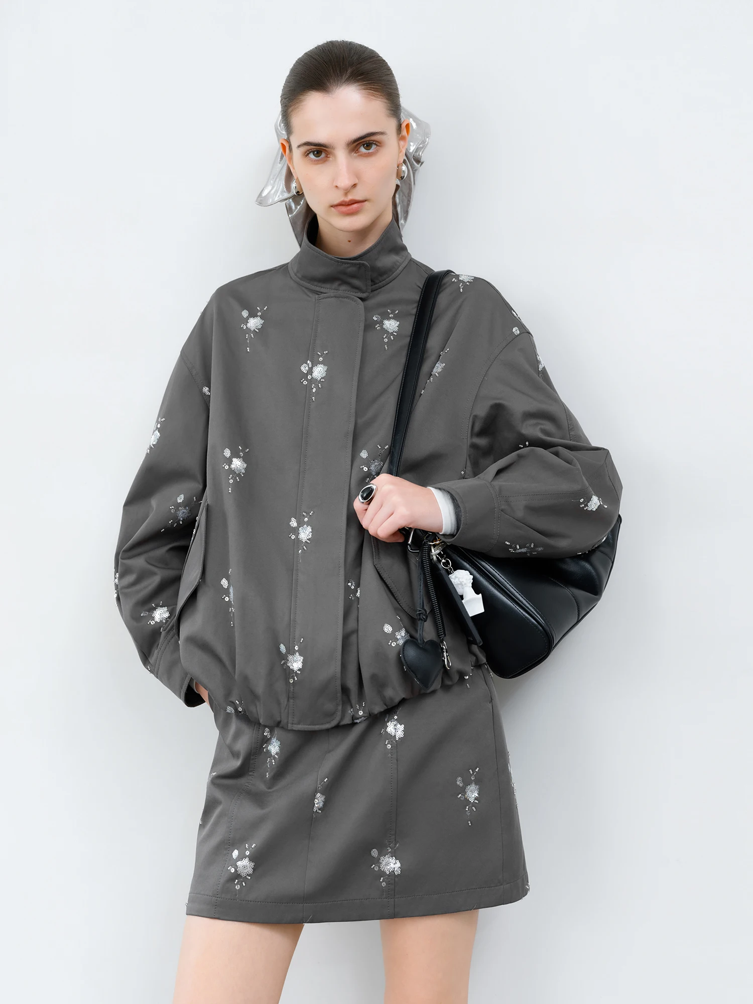 This sequined short jacket and knee-length skirt set is tailored for women seeking a refined casual look with a touch of subtle elegance. Crafted from a blended fabric of 56.5% cotton and 43.5% polyester, it offers a structured yet comfortable fit suitable for spring and summer wear.