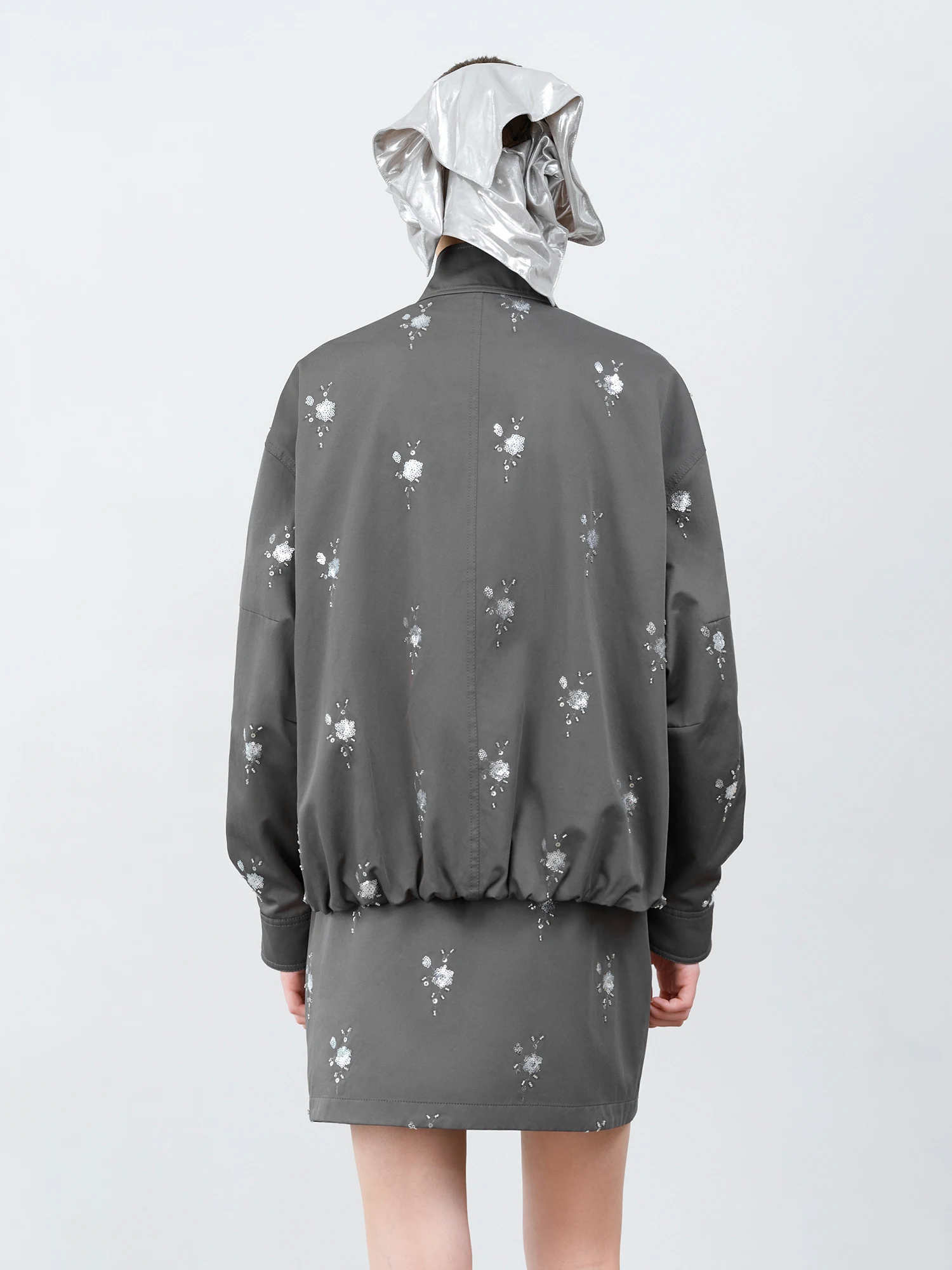 Sequined Short Jacket and Knee-Length Skirt Set in Blended Cotton-Polyester