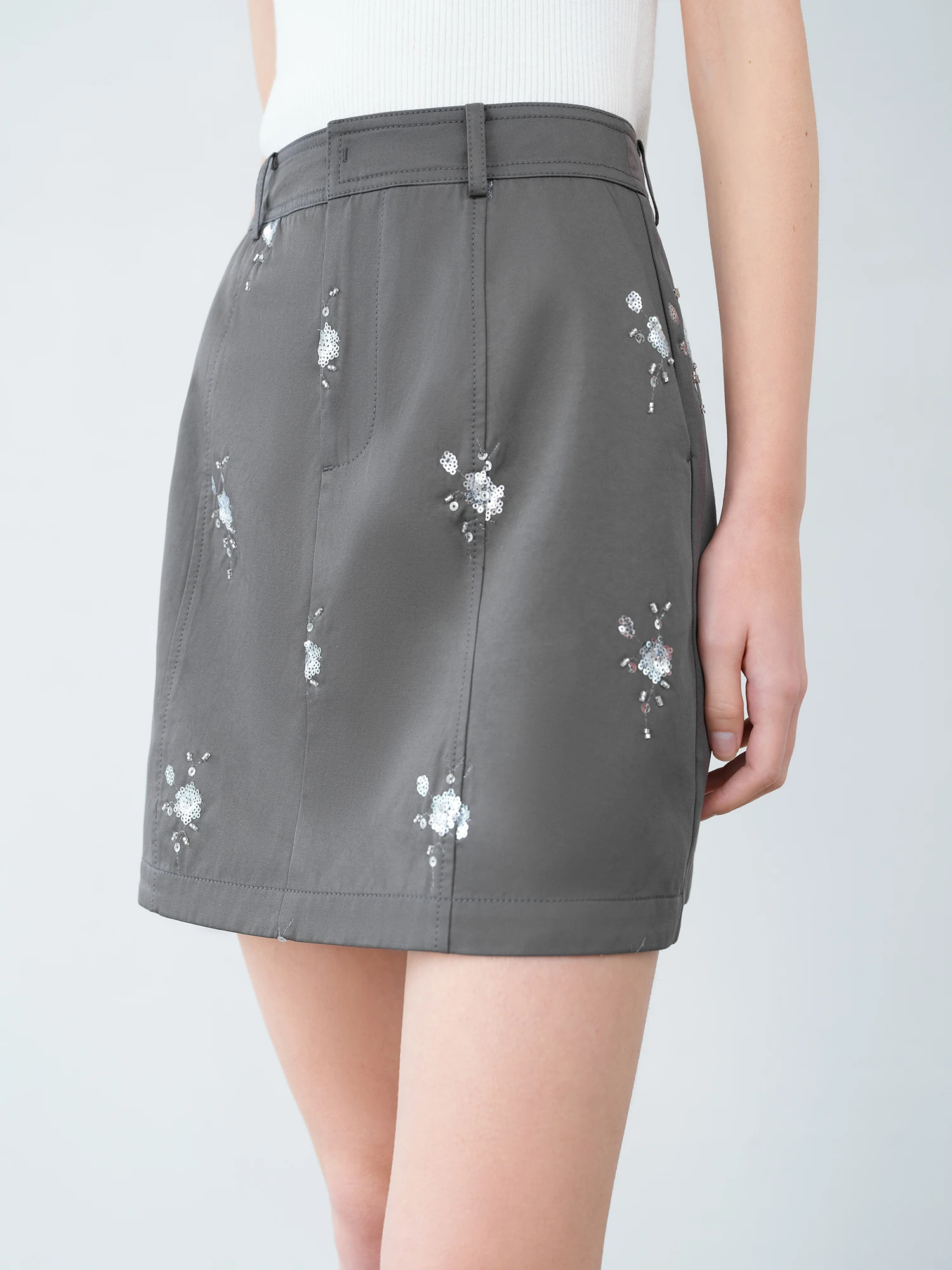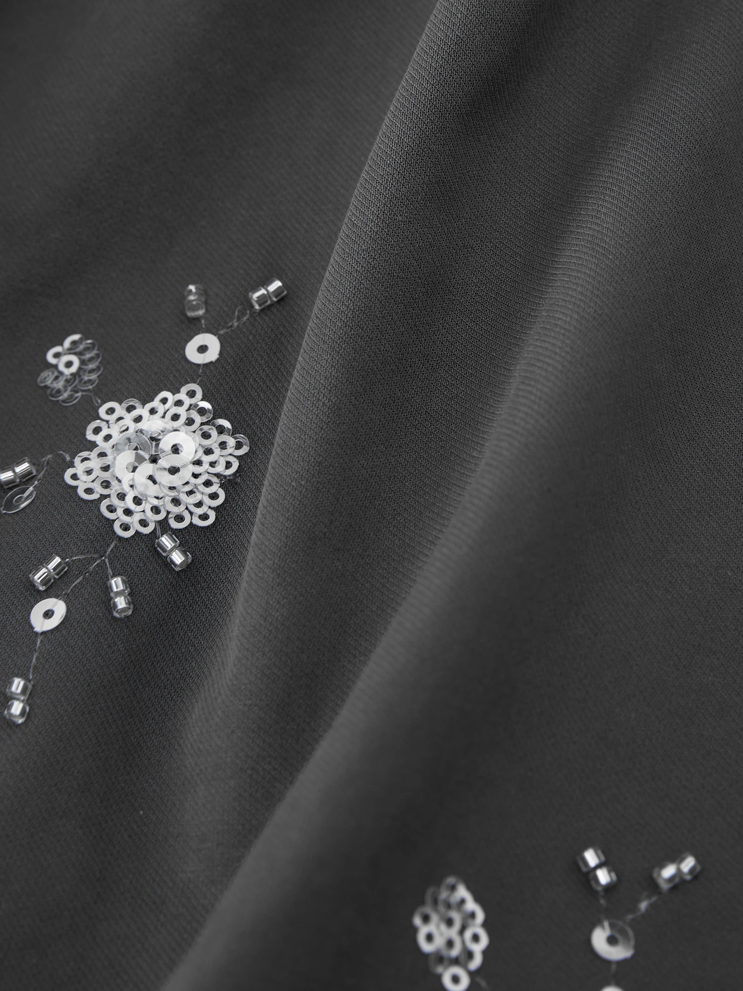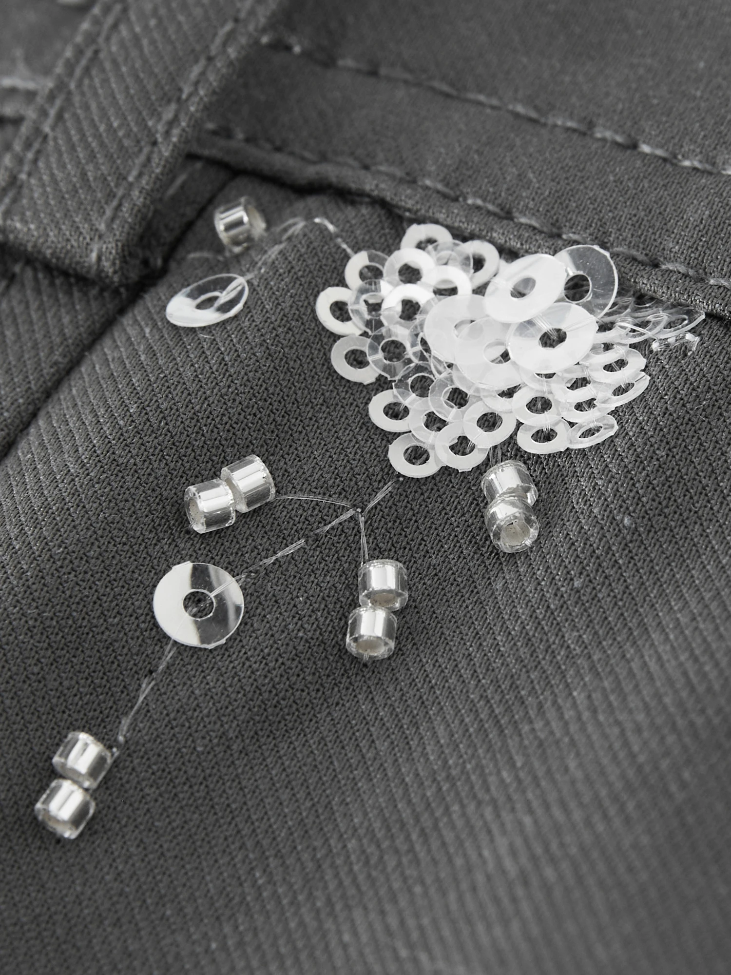 Discover a refined approach to casual elegance with this sequined short jacket and knee-length skirt set. Crafted from a blended fabric of 56.5% cotton and 43.5% polyester, this ensemble balances structure and comfort, making it an ideal choice for spring and summer wardrobes. The set’s natural waistline and straight silhouette provide a flattering yet understated shape, while the subtle sequin detailing adds a touch of sophistication without overwhelming the minimalist design.