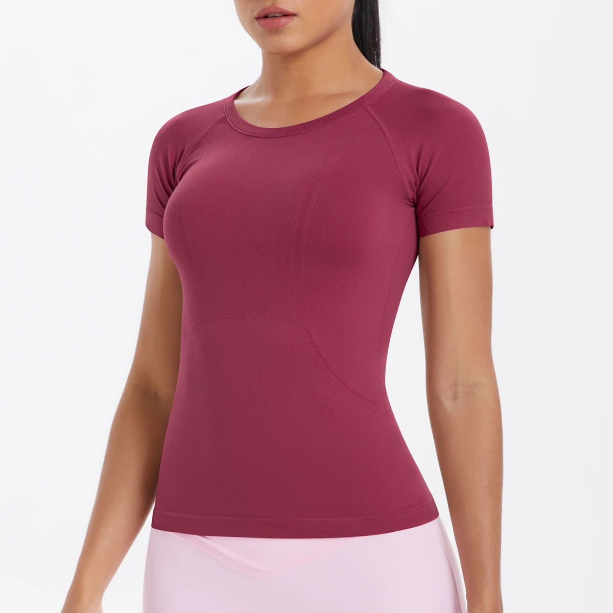 Experience the perfect blend of style and comfort with our seamless short sleeve yoga top. Crafted from high-stretch nylon and spandex, this versatile activewear piece offers a flattering silhouette and true-to-size fit. Available in a range of elegant colors, it’s ideal for every season. Embrace your inner strength and move confidently!