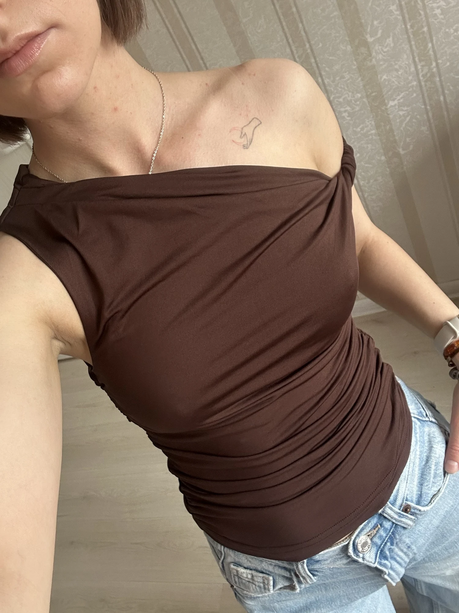 This tank top strikes the perfect balance between casual and chic, making it ideal for various occasions. Pair it with denim shorts for a relaxed day out, or dress it up with a flowy skirt for a night on the town. The off-shoulder design not only allows for comfortable movement but also adds a touch of femininity to your outfit.