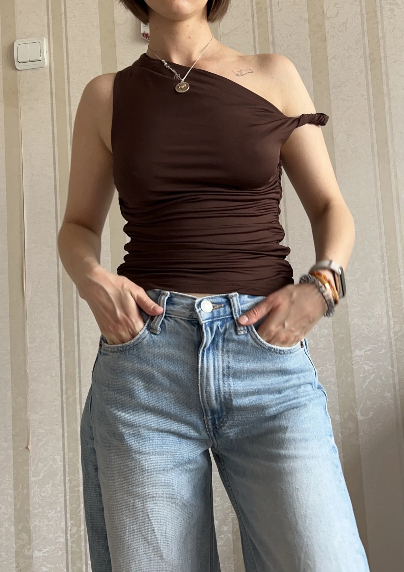 Luminous asymmetrical top for the price of two cups of coffee.