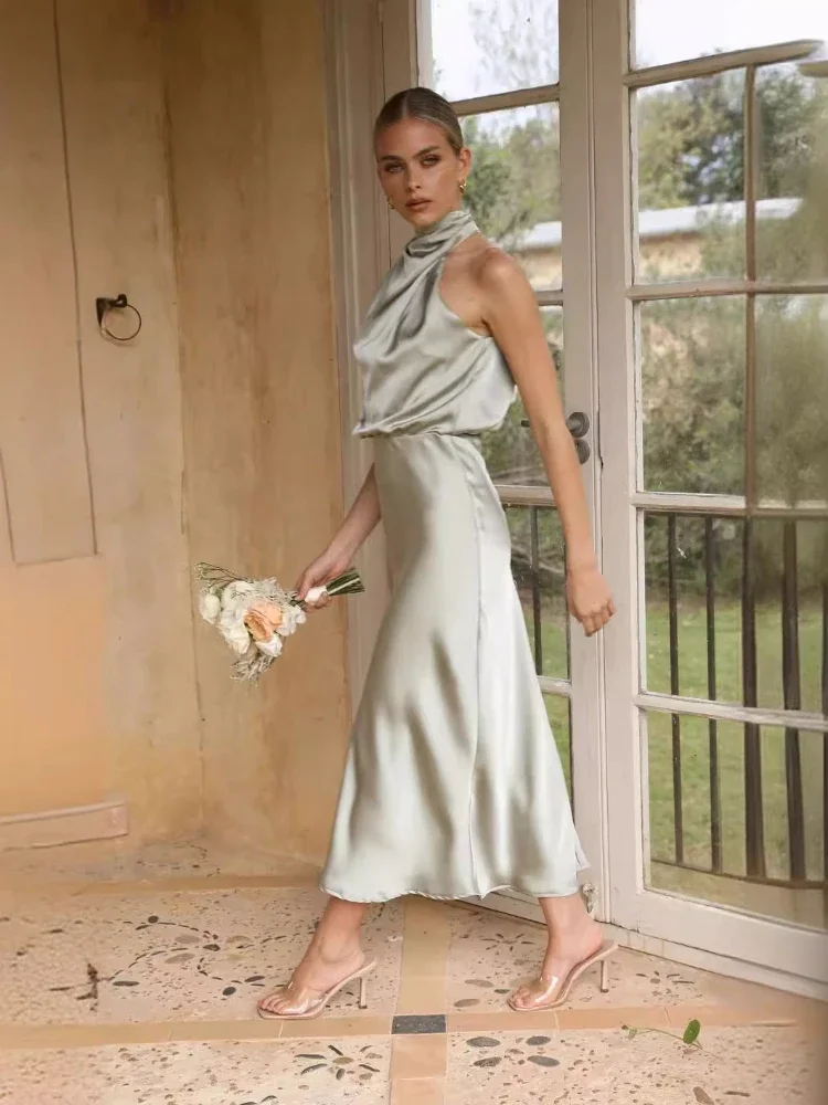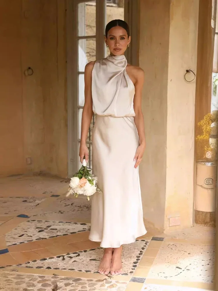 Q: For which occasions is this dress appropriate?A: This ankle-length dress suits formal office environments, summer events, and occasions requiring elegant yet comfortable attire.