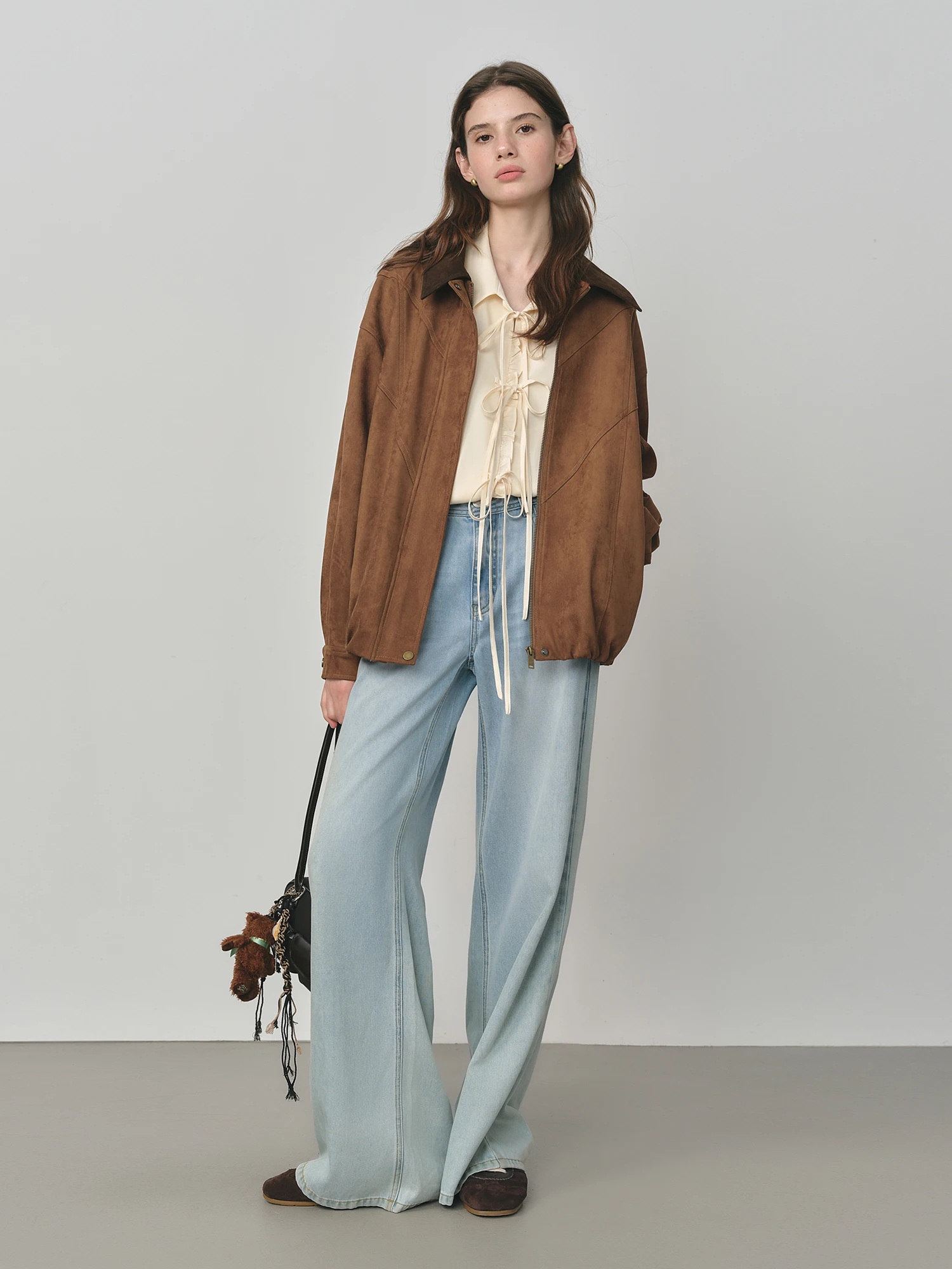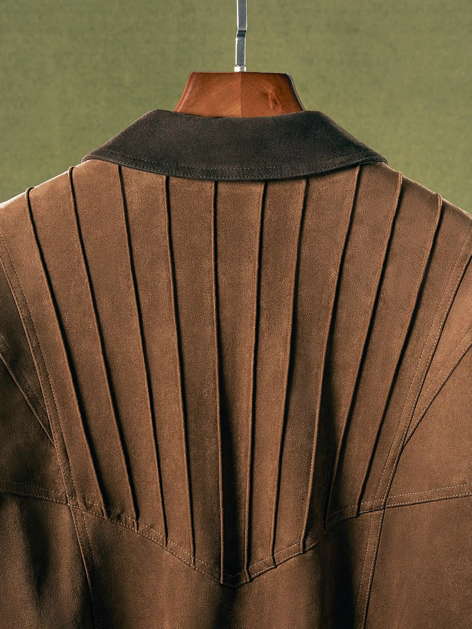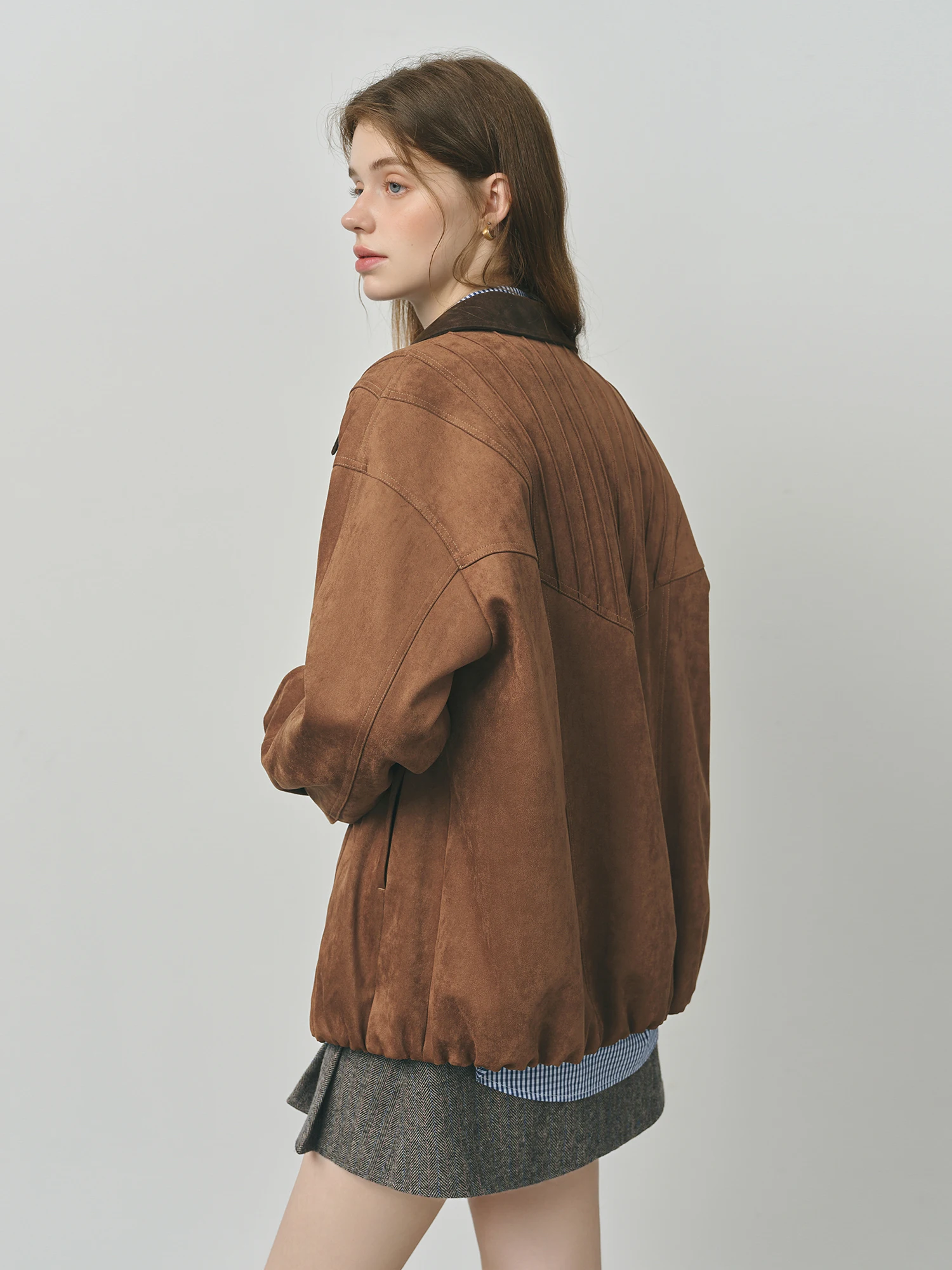 A: The jacket features a soft suede-like texture that is both inviting and stylish.