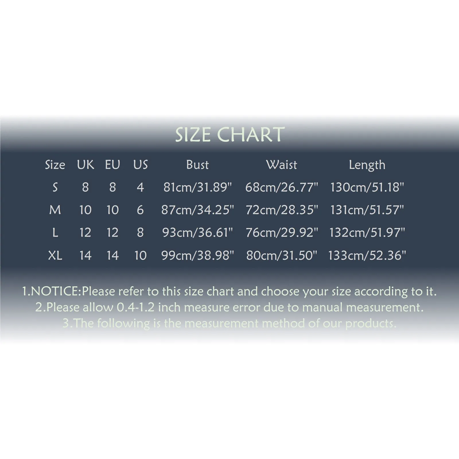 Dress Size Chart (Formal, Casual, Knitted & All Styles)