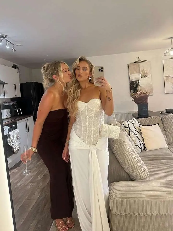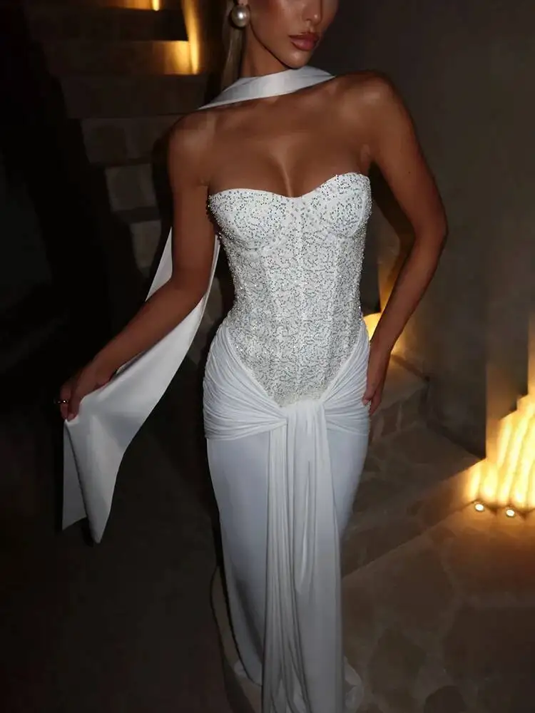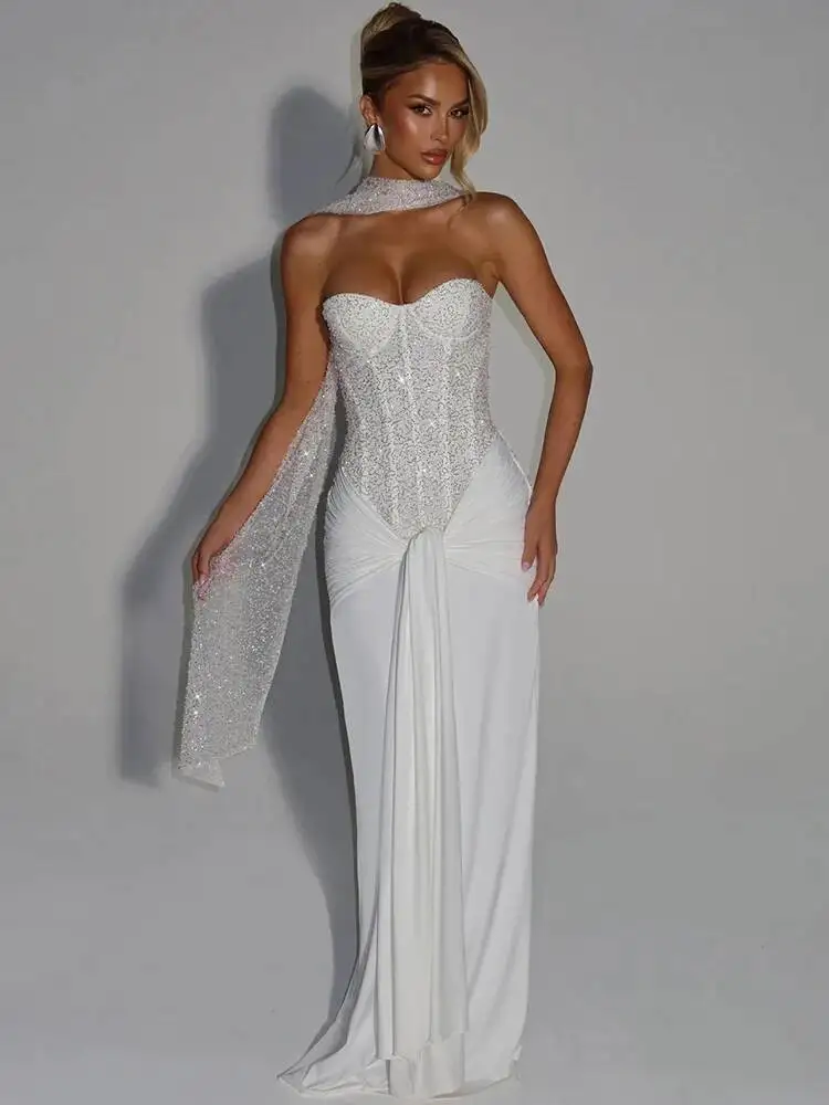 Sparkle with Elegance: Mabel Strapless Maxi Dress in White