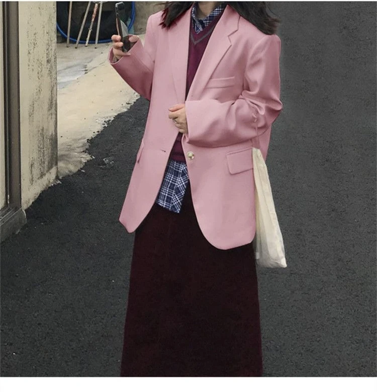 Step into effortless elegance with our Stylish Women's High-End Suit Jacket. Crafted from luxurious synthetic fiber, this blazer features a notched collar and single-breasted closure for a refined look. Available in versatile colors, its loose fit ensures comfort while maintaining a sophisticated silhouette. Perfect for spring and autumn, this timeless piece is designed for every body. Elevate your wardrobe with this statement essential.