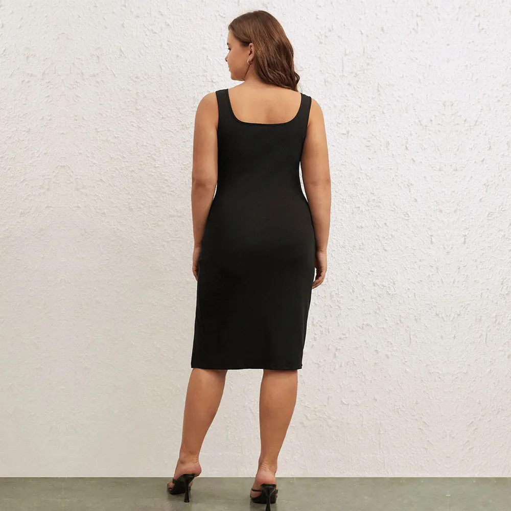 Chic Plus Size Square Neck Slit Dress for Effortless Style