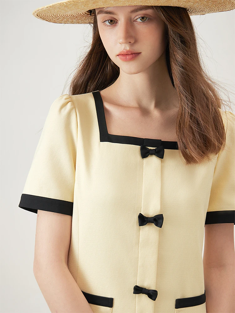 Embrace effortless elegance this summer with the Square Collar A-Line Dress in Yellow. Perfect for casual outings and gatherings, this knee-length dress is designed with a flattering empire waist and a charming square neckline, making it a versatile addition to your wardrobe. Crafted from 100% polyester, it offers lightweight comfort and breathability, ideal for warm days.